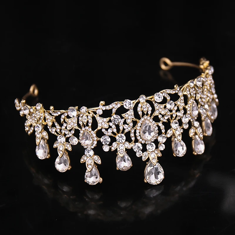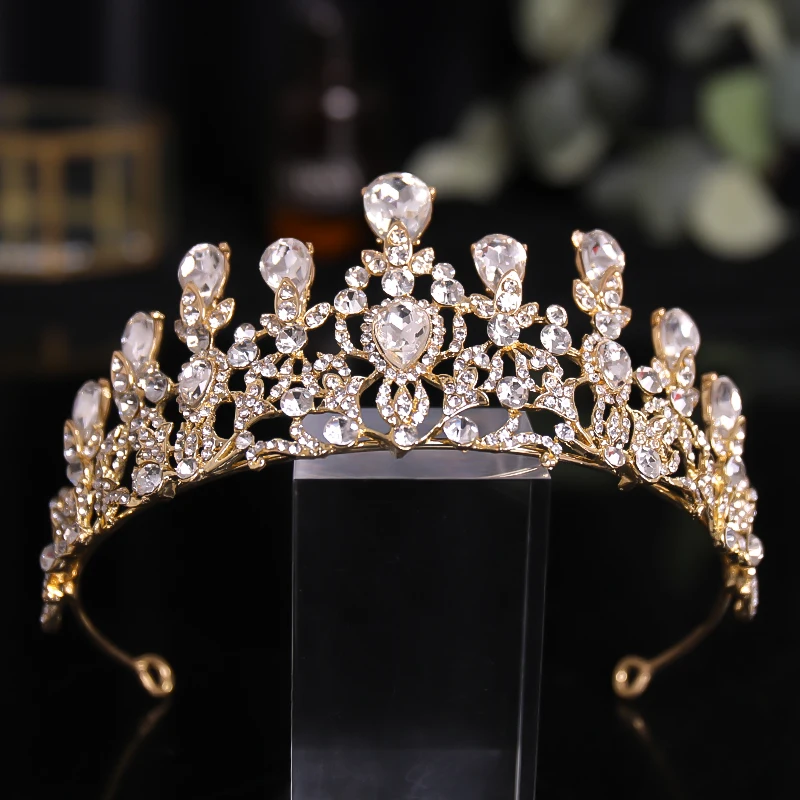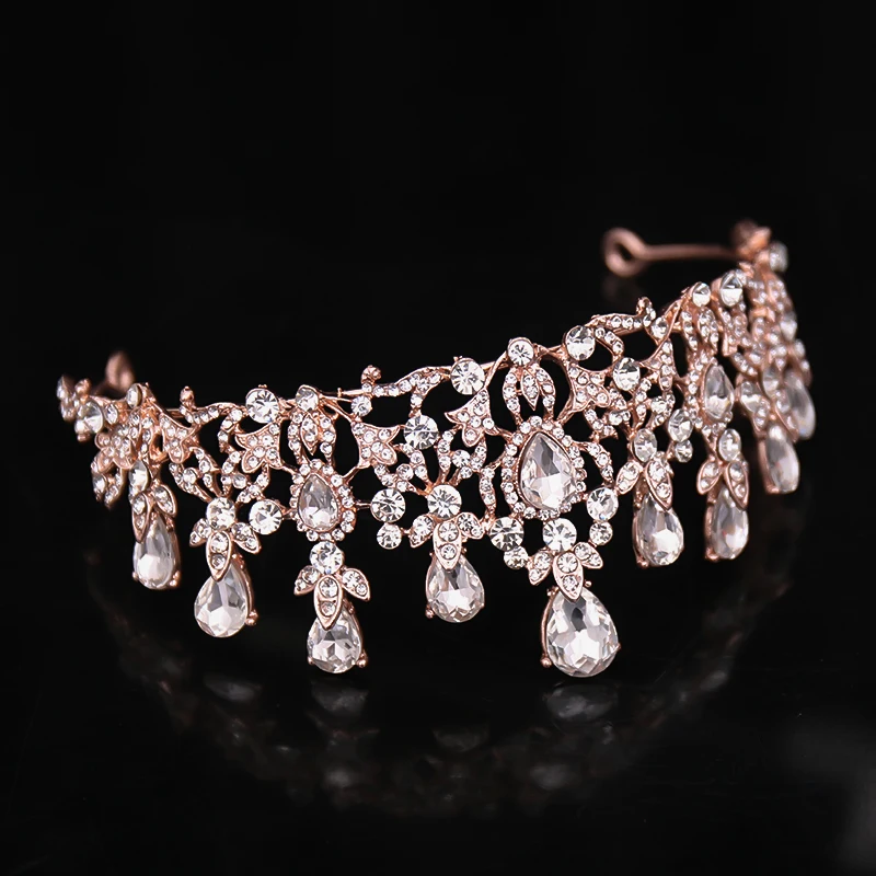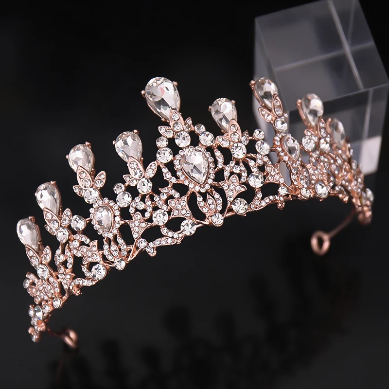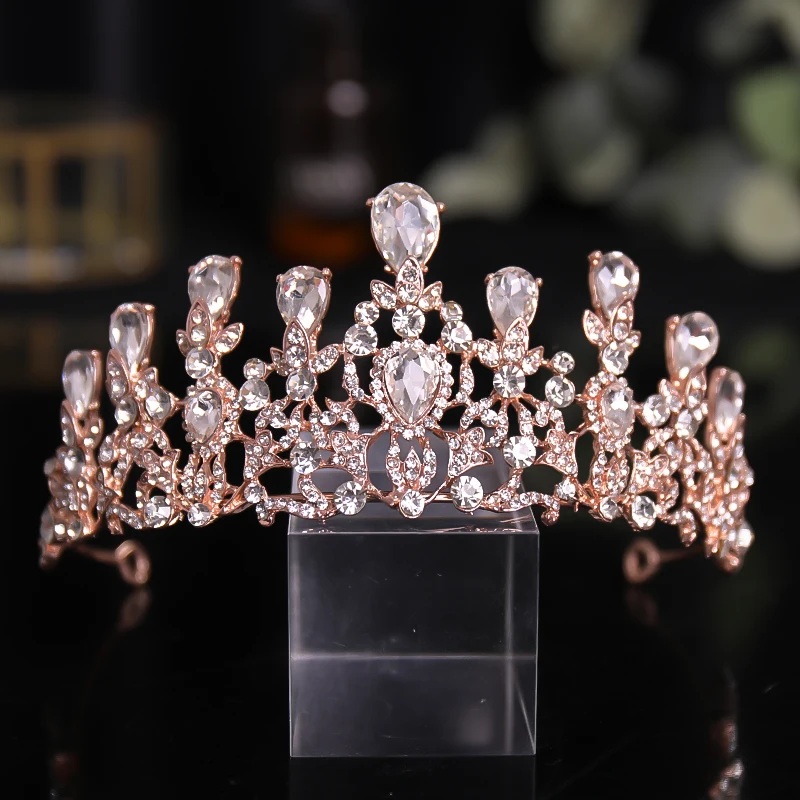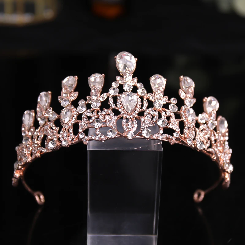Diadème en or rose, accessoires de mariage, coiffe de mariée, couronnes en cristal pour reines