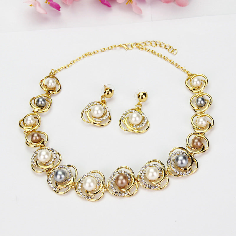 Ensemble de colliers et boucles d'oreilles en alliage de perles et strass pour femmes, bague Saturne, vente en gros