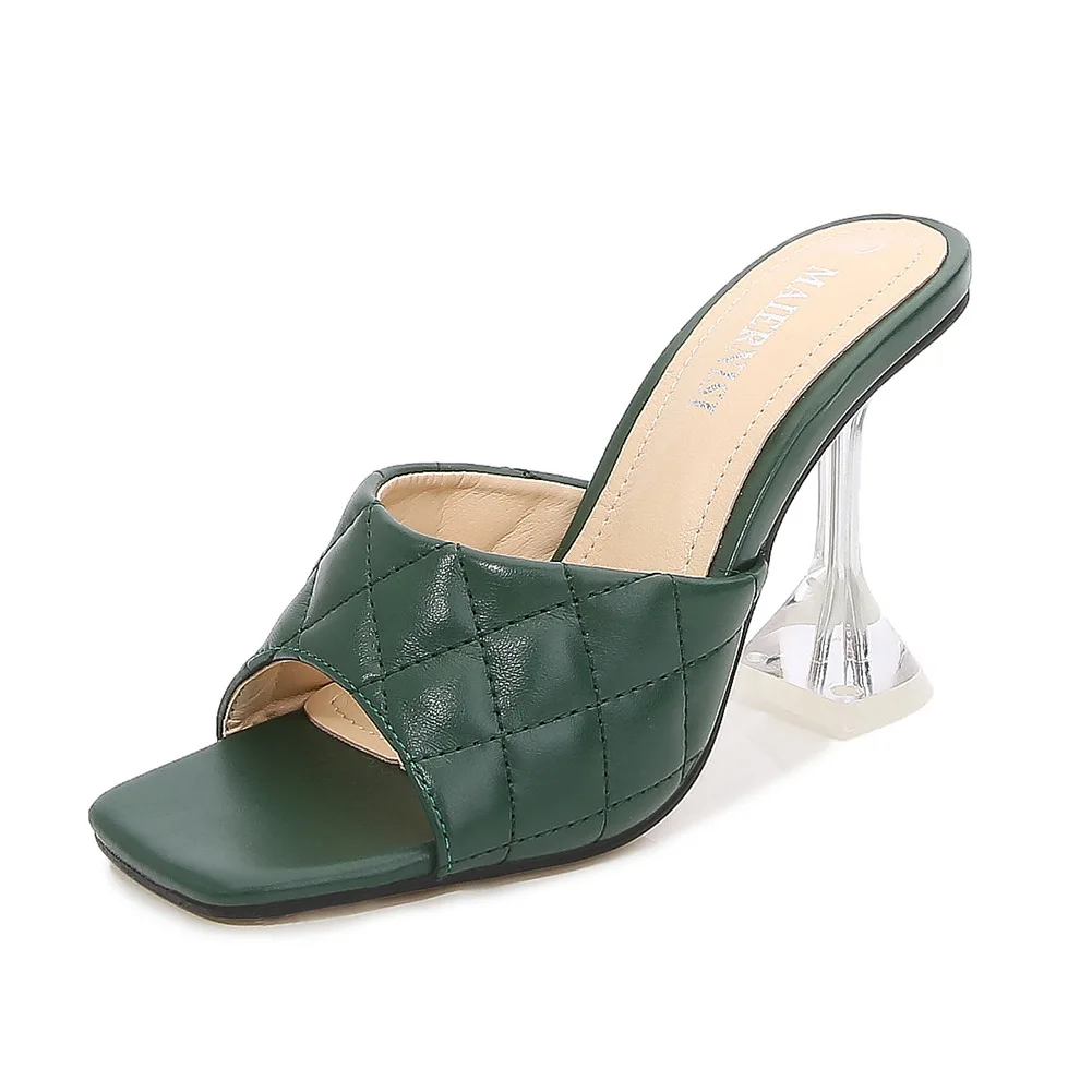 sh10270a Chaussures pour femmes de couleur verte, photos de sandales à talons hauts pour femmes à talons transparents