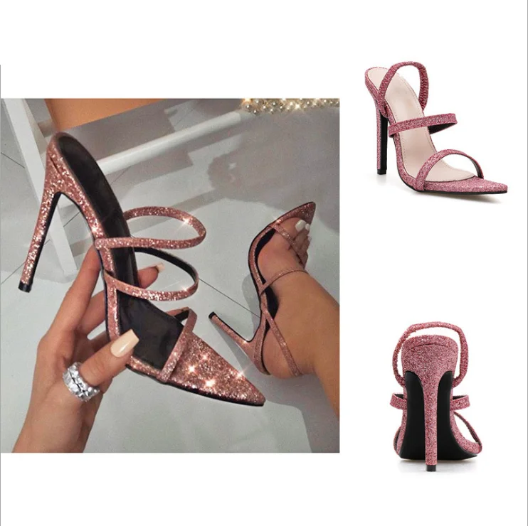 Talons brillants et tendance pour filles, sandales d'été sexy, mules à talons aiguilles hauts, vente en gros, chaussures pour femmes, nouveautés, populaires, dernière arrivée, rose