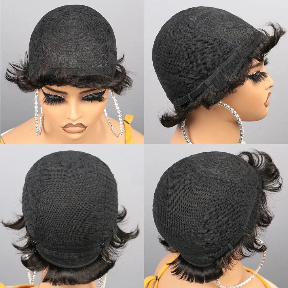 Short Bob Wig Human Hair for Black Women Pixie Cut wigs Human Hair Wig Glueless Wig None Lace Front Wig with Bangs Natural Black