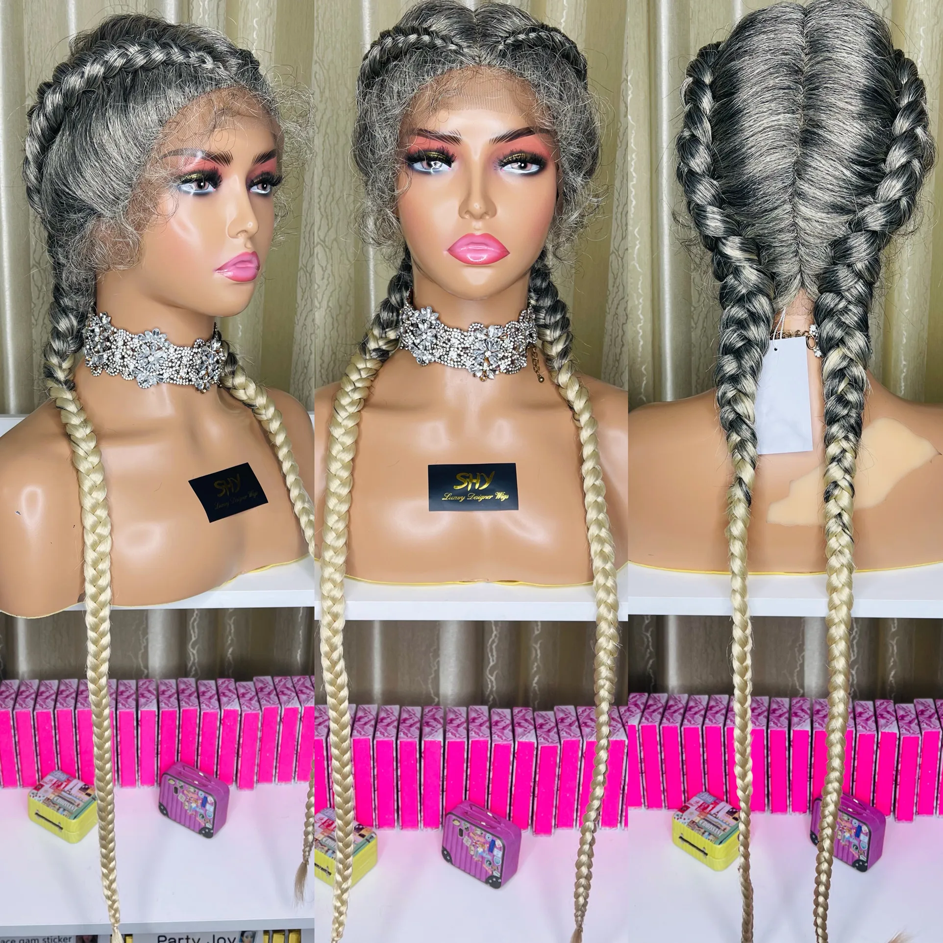 SHY HAIR Nouvelles perruques tressées en cheveux synthétiques T Part pour femmes Expédition instantanée En stock
