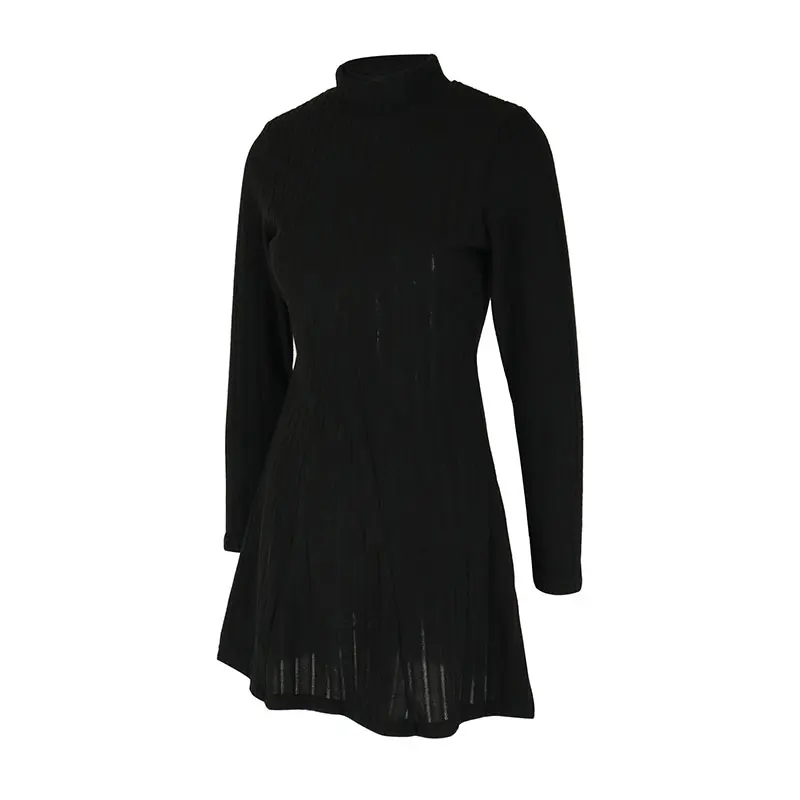 Spring Sexy Women's A-Line Dresses Fashion New Club Party Half High Collar Long Sleeves Black Dress Female Casual Slim Dresses