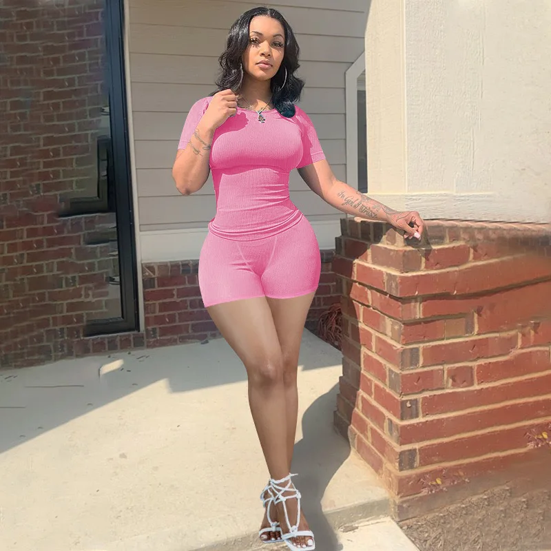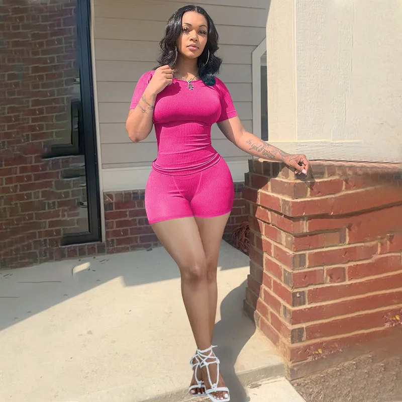 Survêtement Streetwear Tricot Loungewear 2024 Ensembles Ensemble 2 Pièces Décontracté Tricot Côtelé Fitness Yoga Vêtements Deux Pièces Été Tricot Short Ensemble