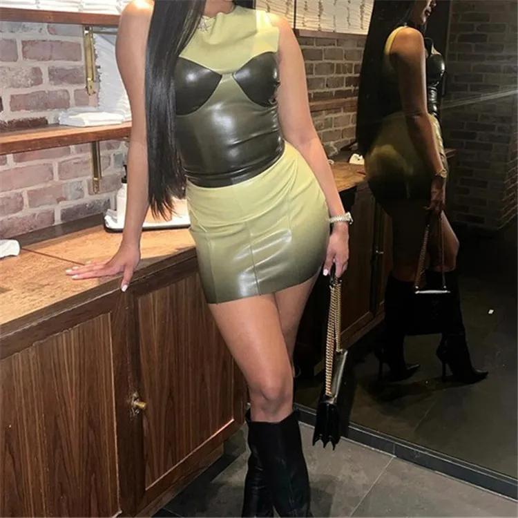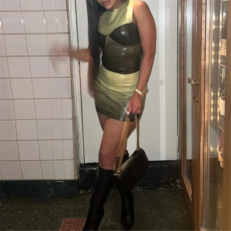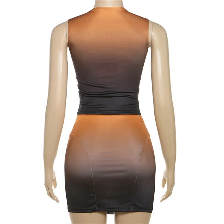 Ensemble jupe 2 pièces été 2024 pour femme, streetwear, imprimé dégradé, col rond, débardeur moulant et mini-jupe assortie