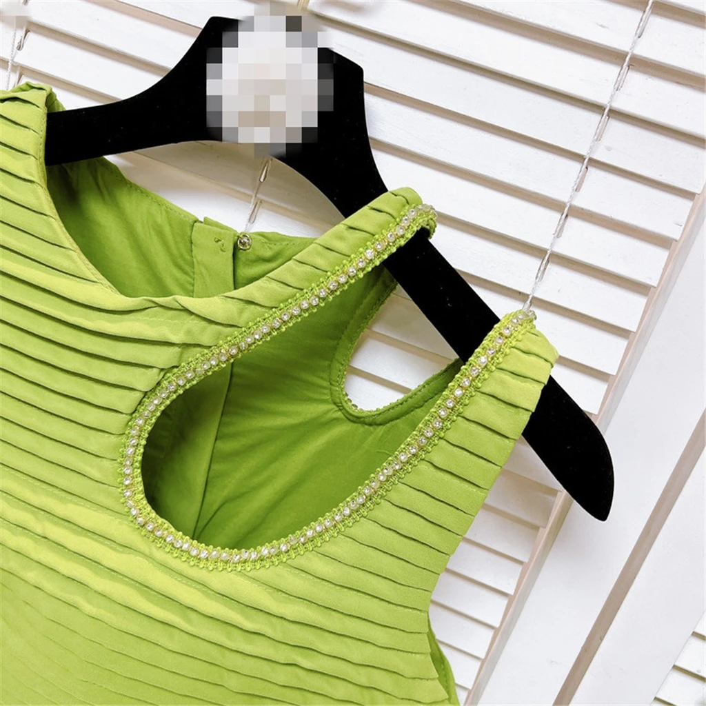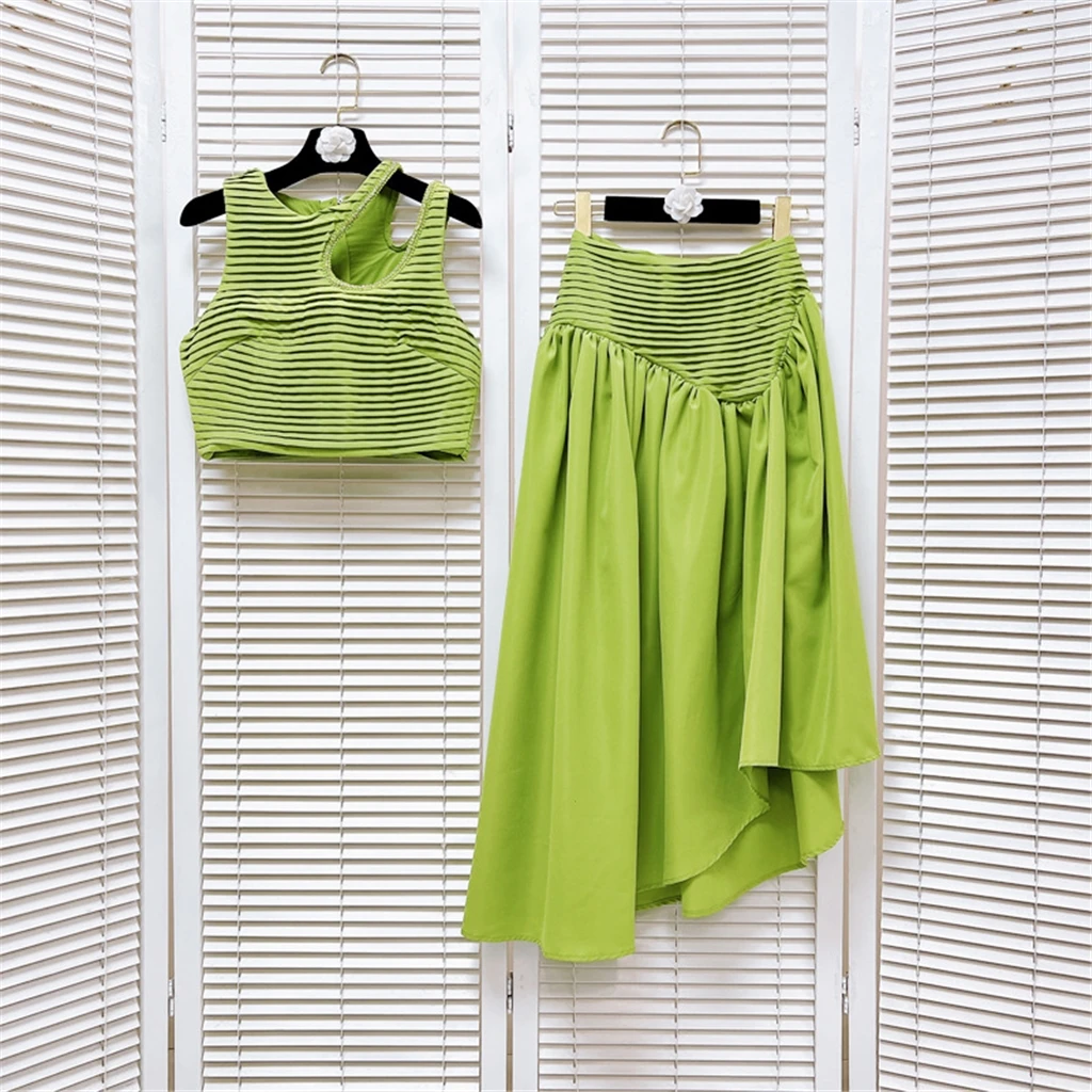 Ensemble deux pièces élégant pour femme, haut court sans manches, jupe longue plissée bouffante irrégulière, coupe trapèze, tenue d'été