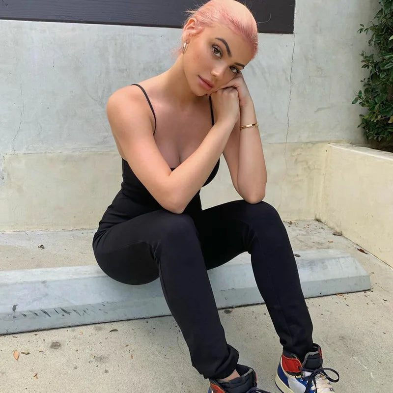 Summer Black Sleeveless Jumpsuits Womens Rompers Spaghetti Strap Backless Casual Party Bodycon Skinny Outifts Fashion Streetwear
