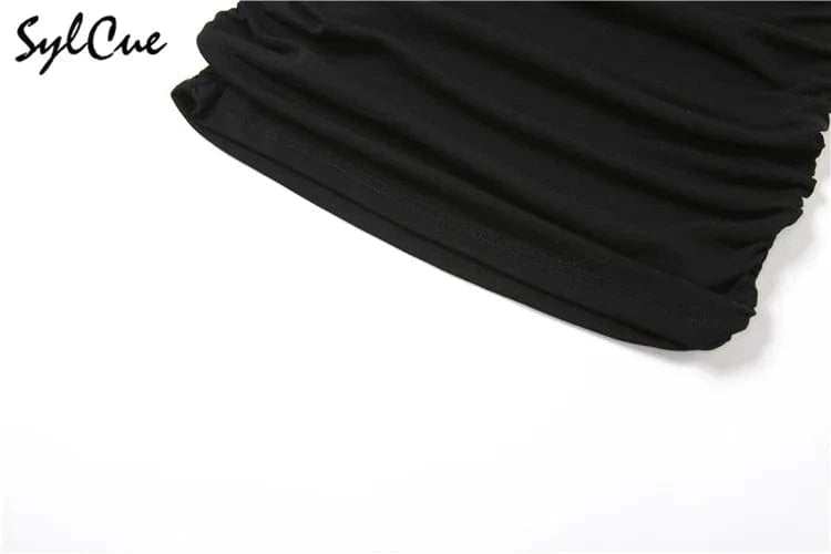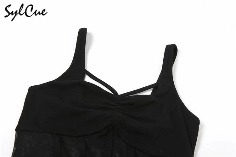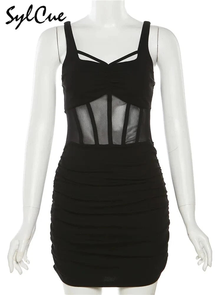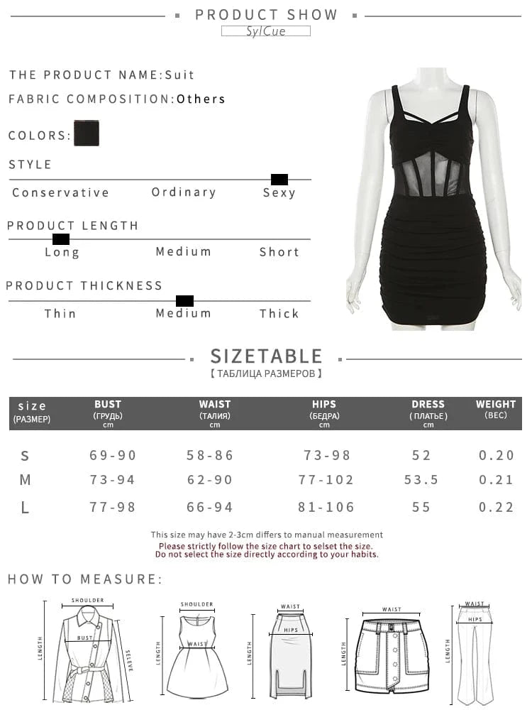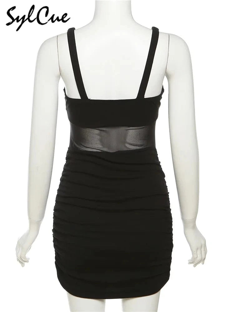 Sylcue Black Mysterious Sexy Mature Beautiful Tight Hot Confident Summer Party Intellectual Elegant Simple Women'S Strap Dress