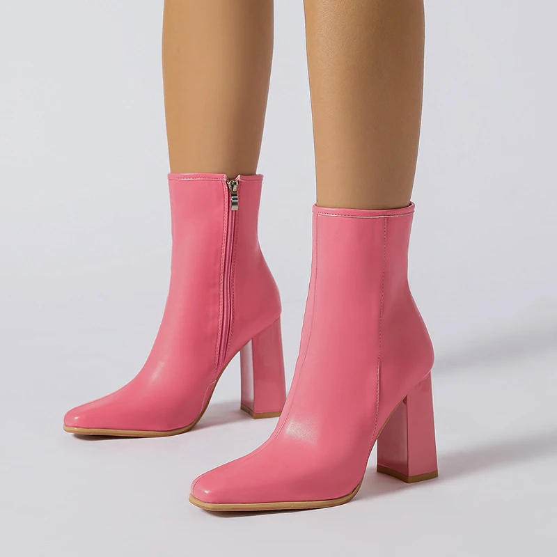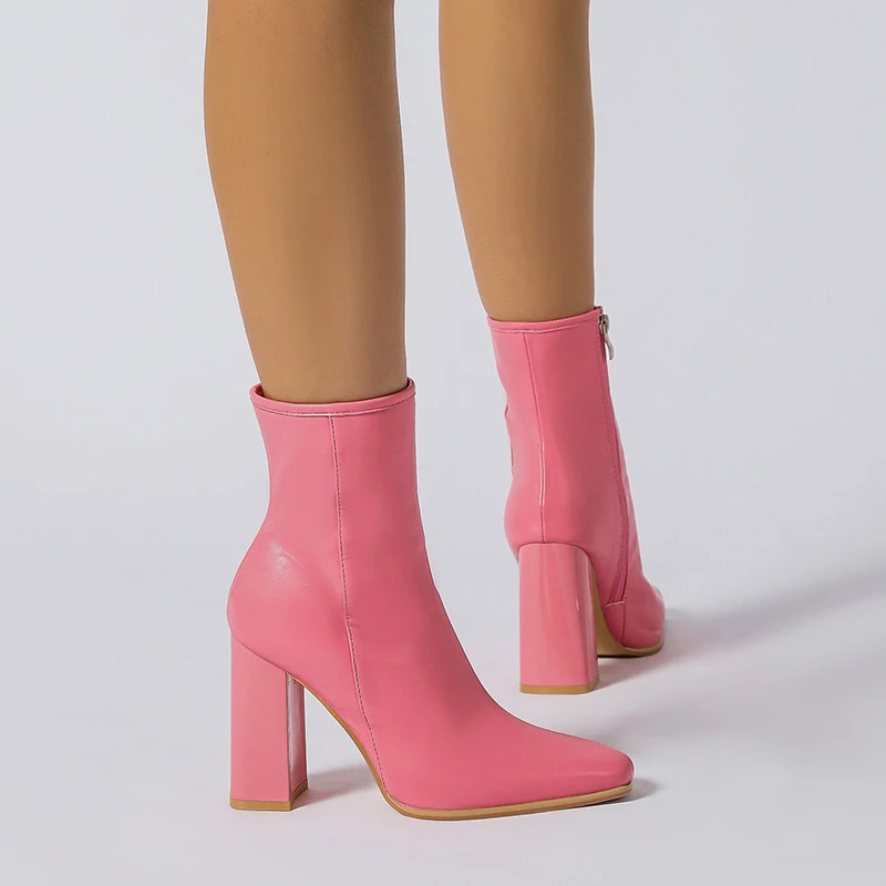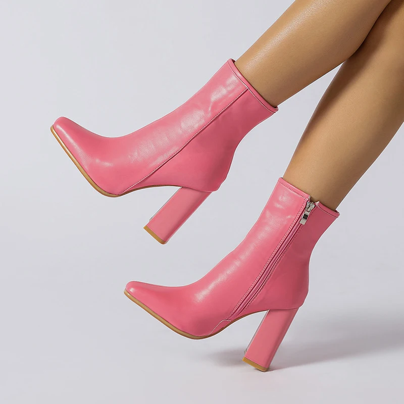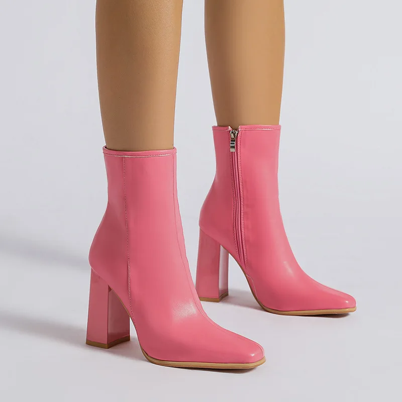 Bottes courtes tendance grande taille pour femmes, chaussures à talons compensés pour dames, bottes roses au-dessus du genou pour dames, automne-hiver