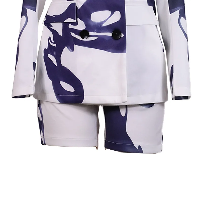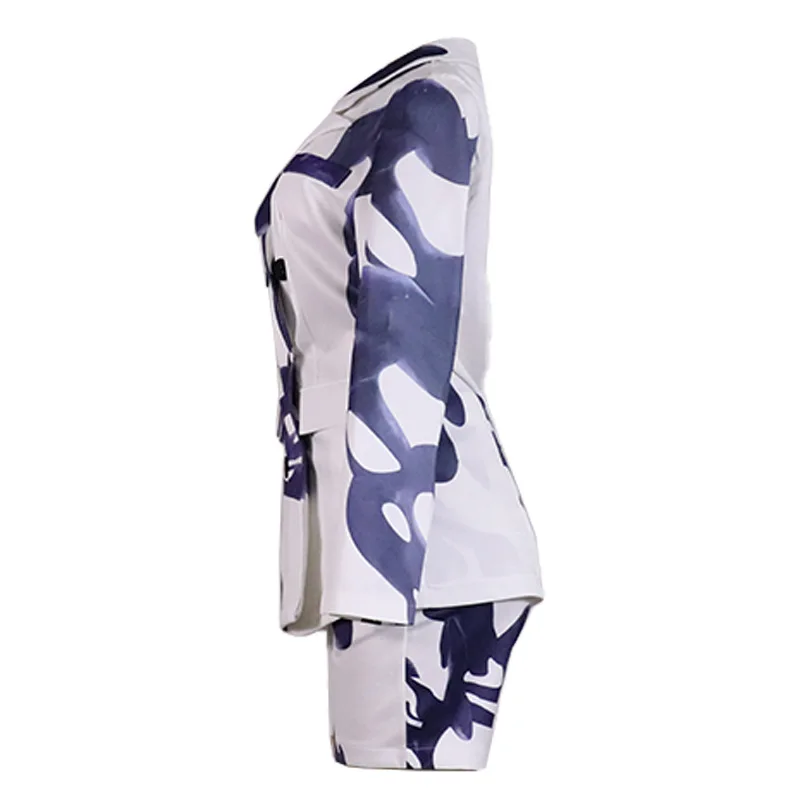 Ensemble de costumes d'affaires pour femmes, blazer à manches longues et short, imprimé blanc, grande taille, tendance, 2 pièces, Turquie