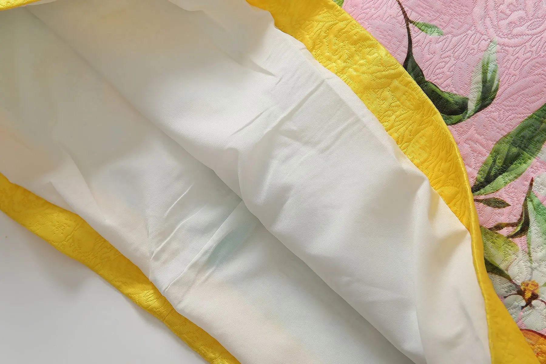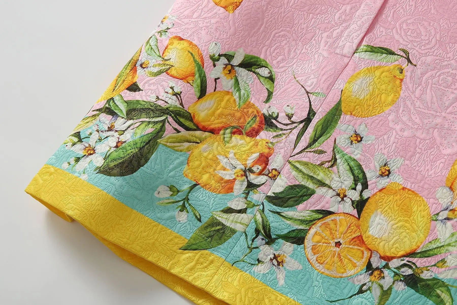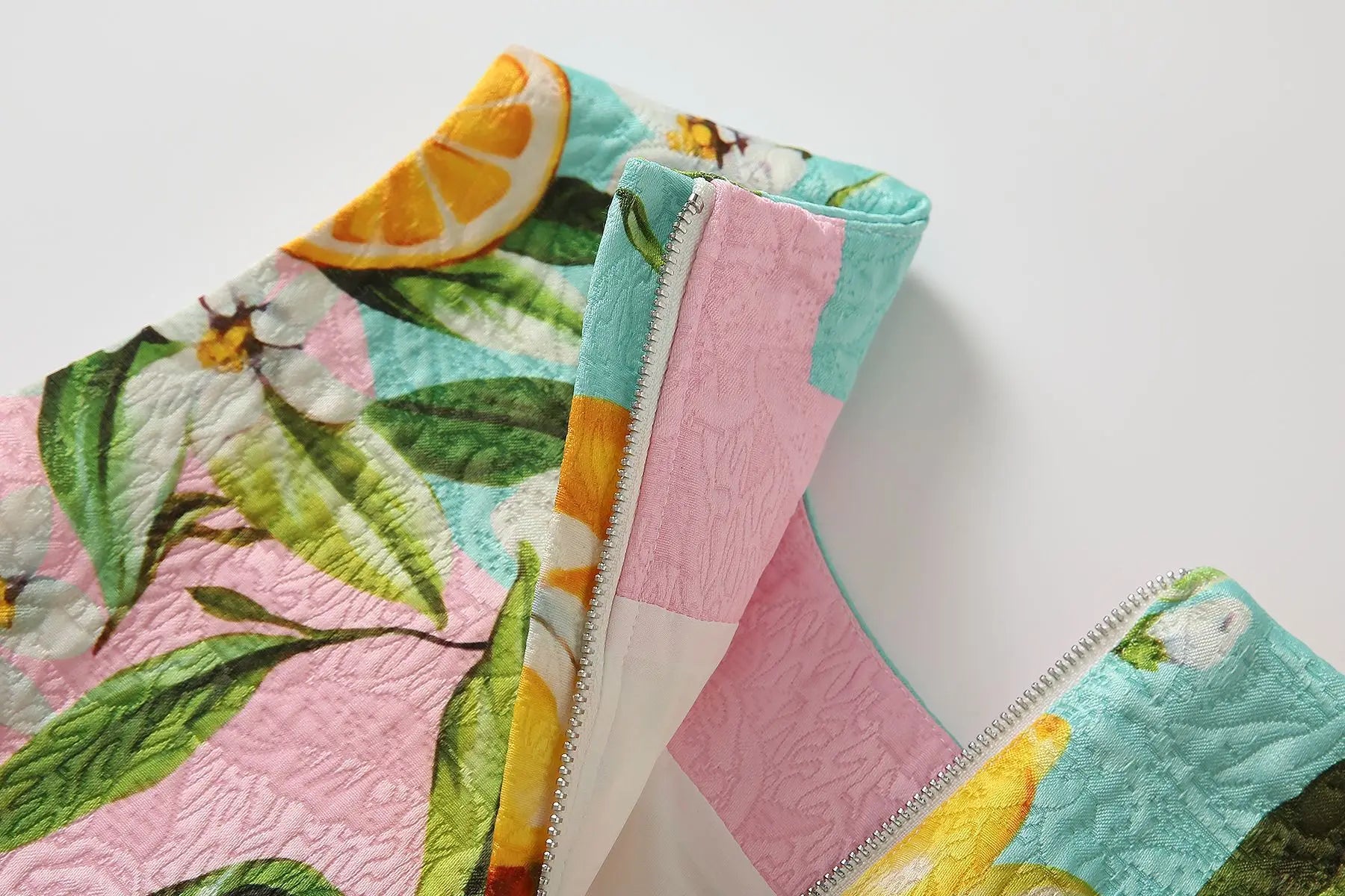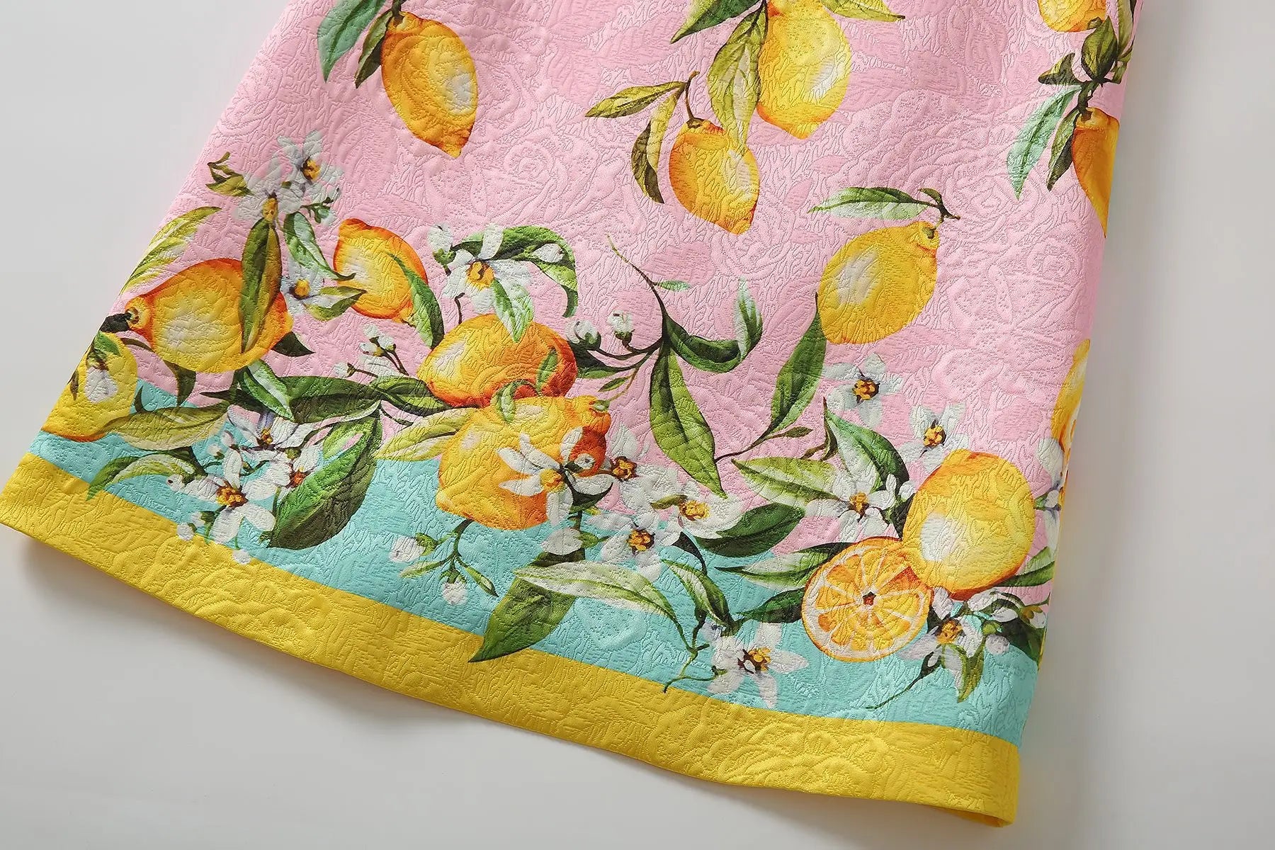 Vintage Jacquard Printed Lemon Vest A-line Dress Summer New Fashion Round Neck Sleeveless Slim Temperament Short Women's Dress
