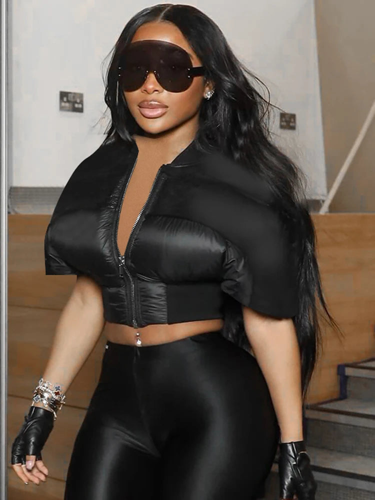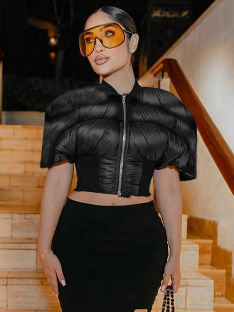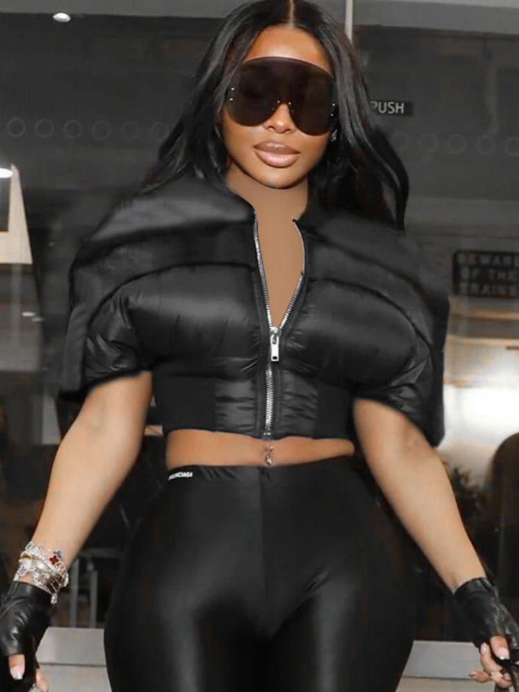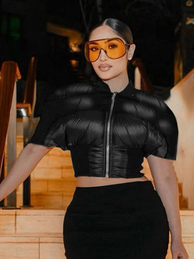 Weird Puss Hipster Zip Jacket Women Thick Padded Autumn New Fashion Shorts Sleeve Quilted Padded Casual Basic Wild Streetwear