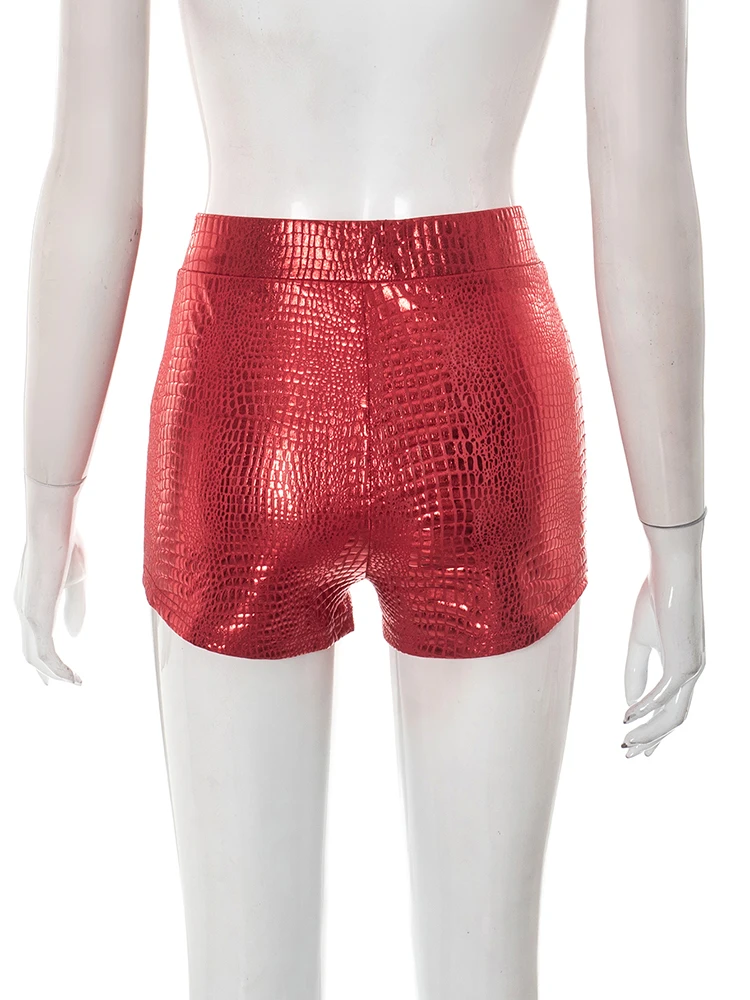Weird Puss PU Serpentine Leather Shorts Women Elastica Waist Skinny Stretch Summer High Street Style Sexy Fashion Mini Bottoms