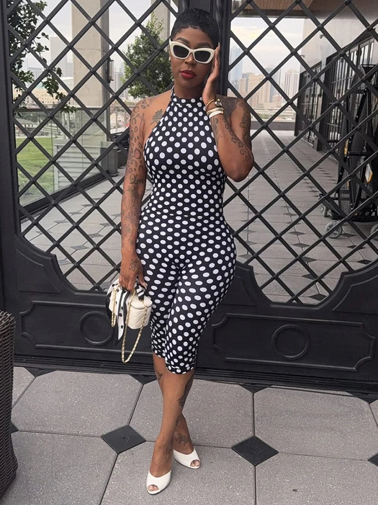 Weird Puss Sexy Print Halter Romper Women Bandage Summer Colorful Hipster Backless Activity Workout Fit Tight Stretch Playsuits