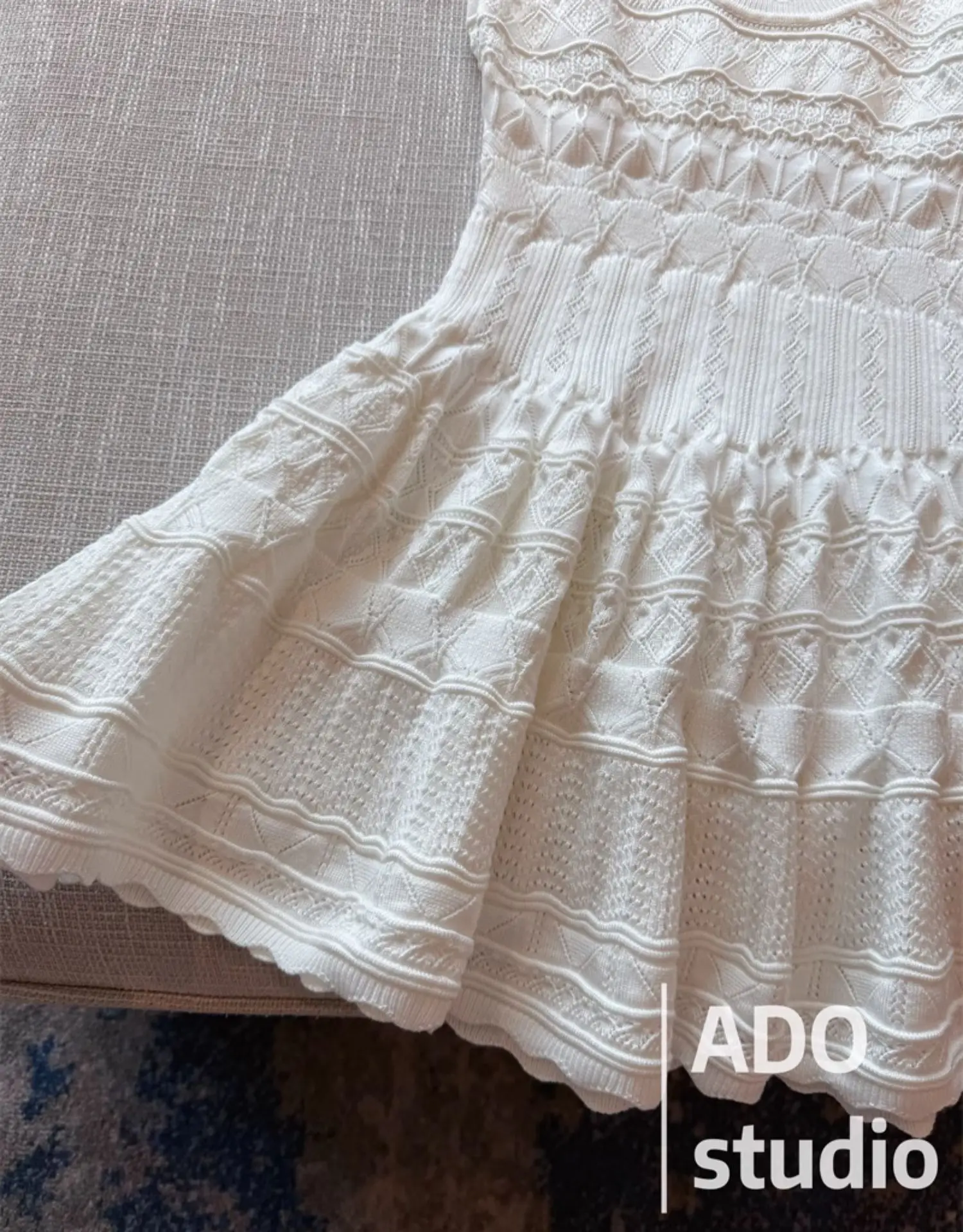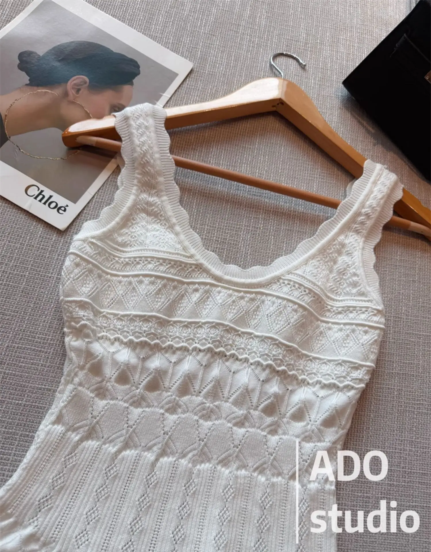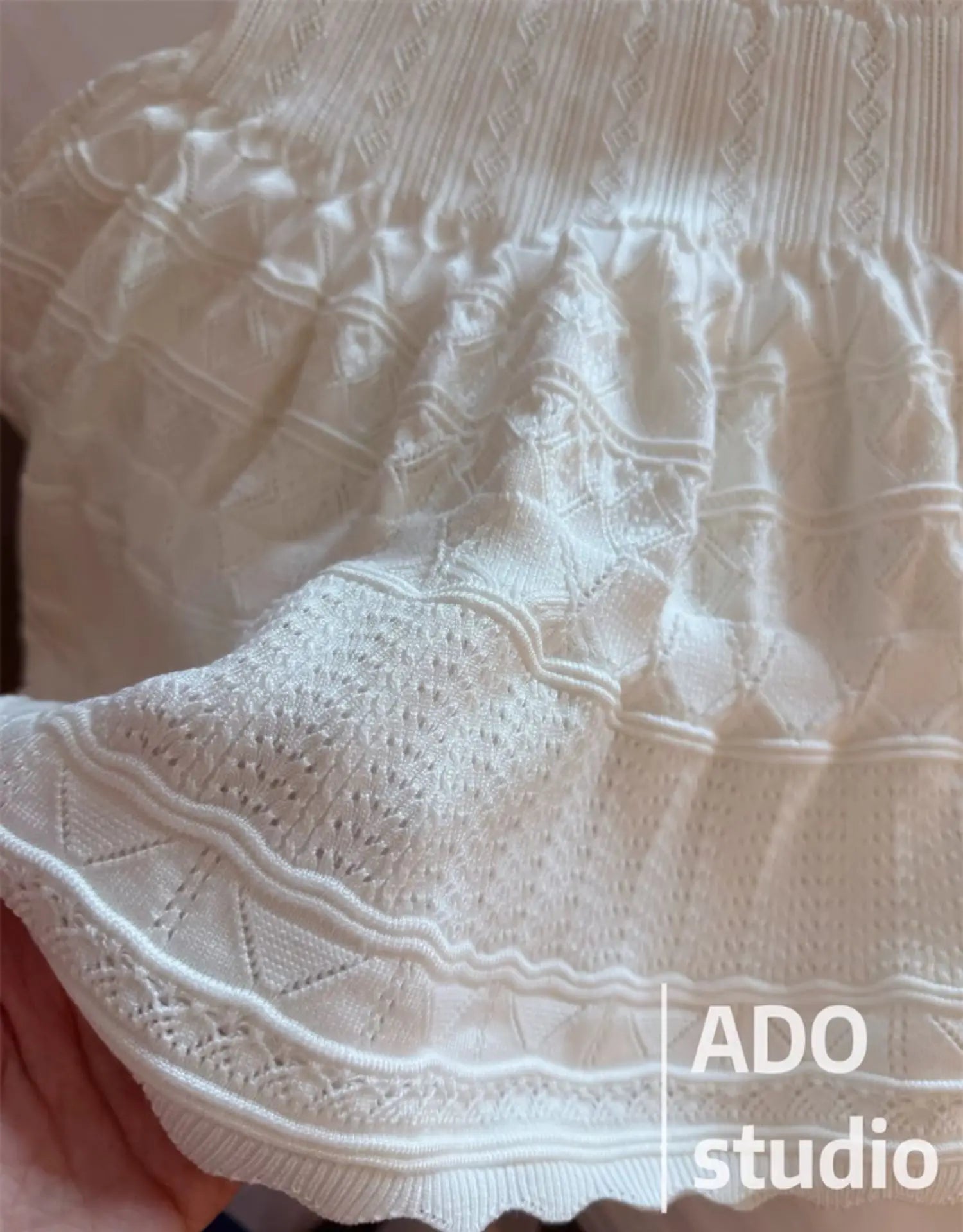 White Sweet A-line Ruffle Edge Knitted Vest Dress Women's Summer French Fashion Slim Temperament Sexy Girl Hollow Short Dress