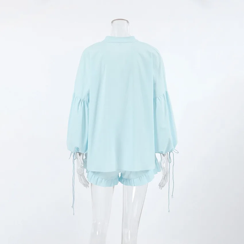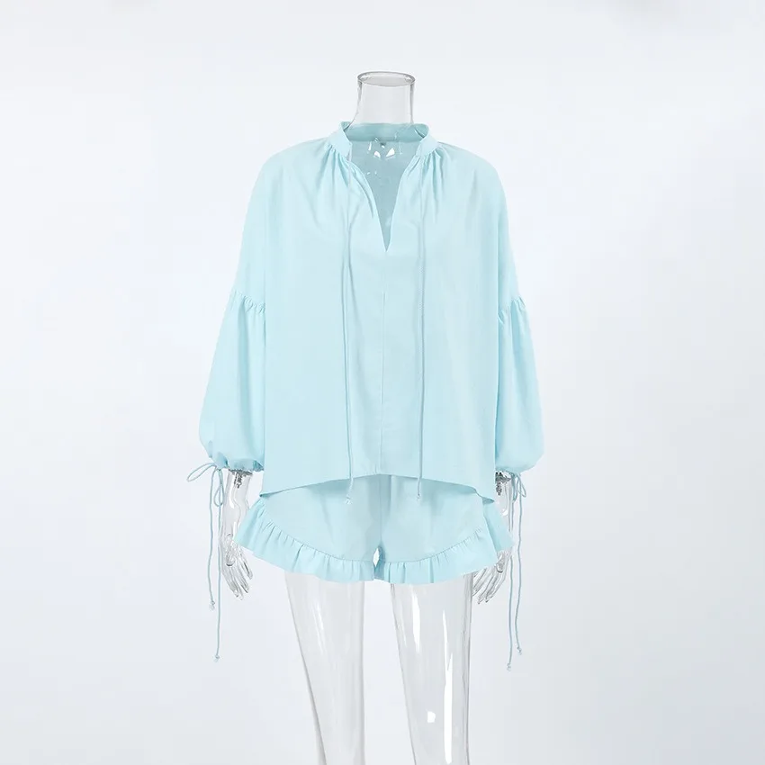 Ensemble deux pièces décontracté en gros, nouveautés d'été 2023, chemises à manches mi-longues à la mode, ensembles de shorts en coton pour femmes