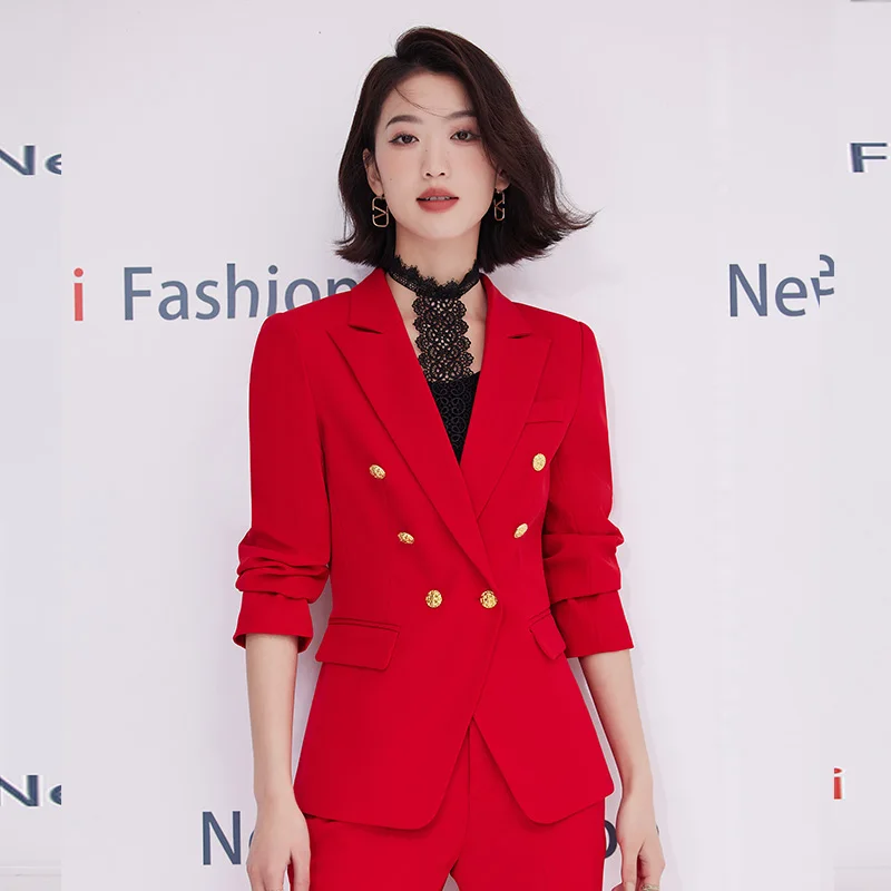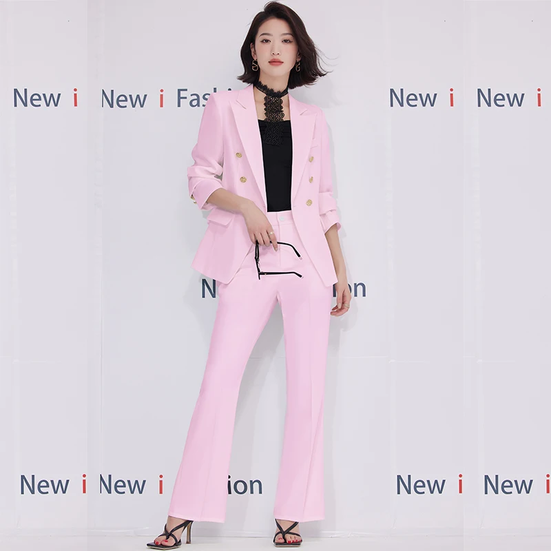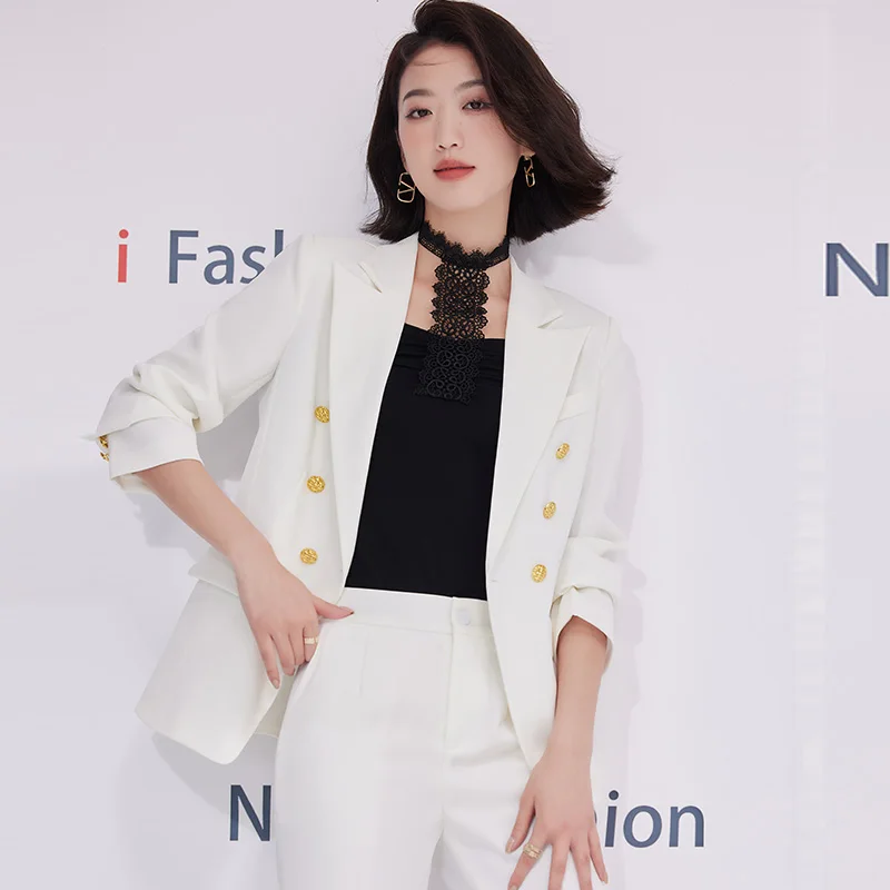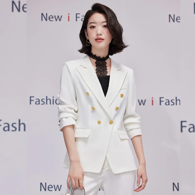 Vente en gros de haute qualité 2 pièces ensemble formel costume d'affaires blazer bureau dame mode blanc élégant tenues femmes veste et pantalon