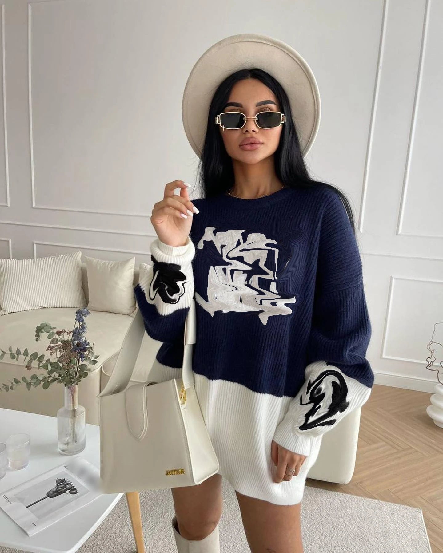 Vente en gros robe pull à manches longues pour femme, pull long tricoté décontracté pour femme