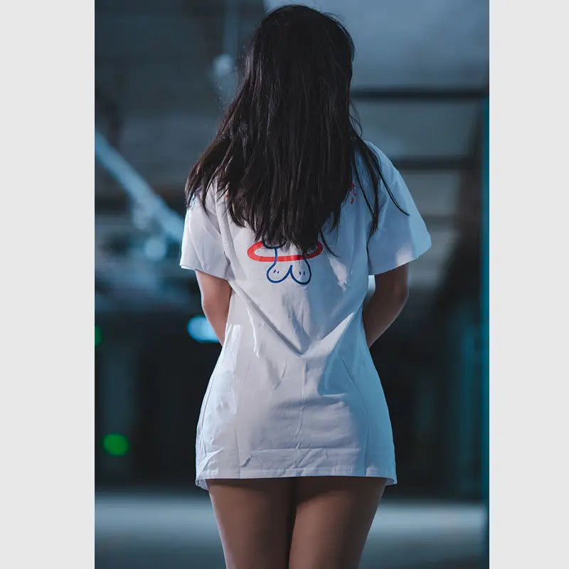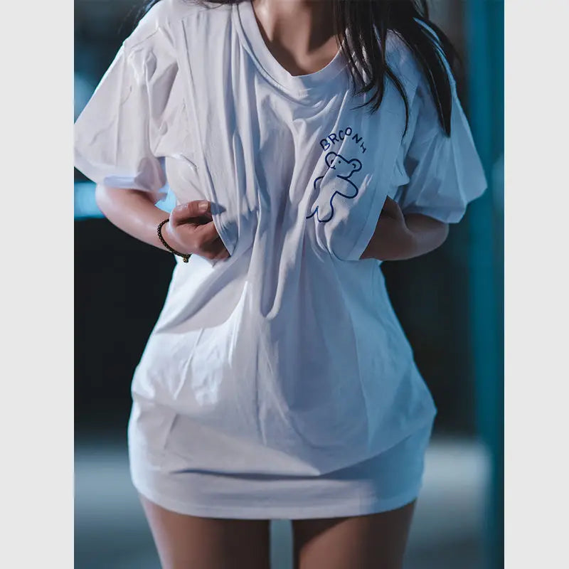 There are openings on both sides of the chest, which can expose or cover the chest at will. As it is a long T-shirt, it can cover the lower body well. The shape is the same as the daily T-shirt, which is convenient to hide your little secret.