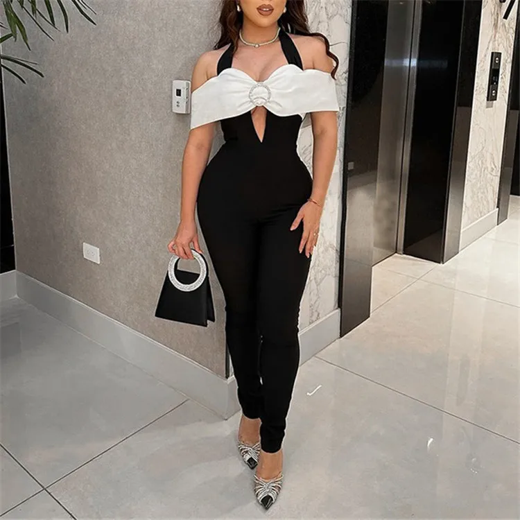 Combinaison de soirée élégante pour femmes, tenue de soirée, de club, d'anniversaire, patchwork, 2024