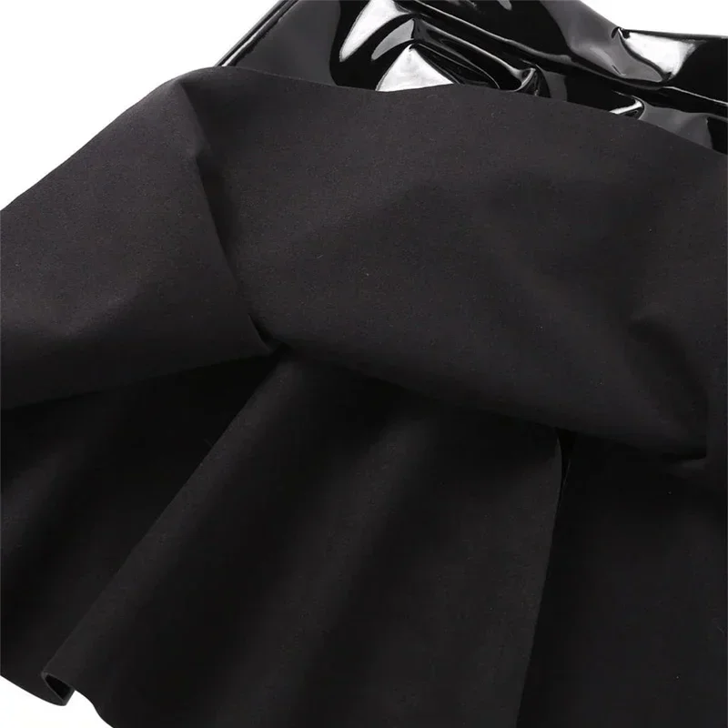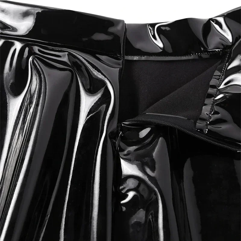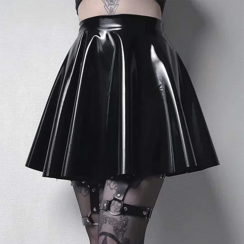 Women Gothic PVC A-line Skating Skirt Shiny Patent Leather Pleated Skirt Ladies High Waist Faux Latex Mini Skirt Custom Clubwear
