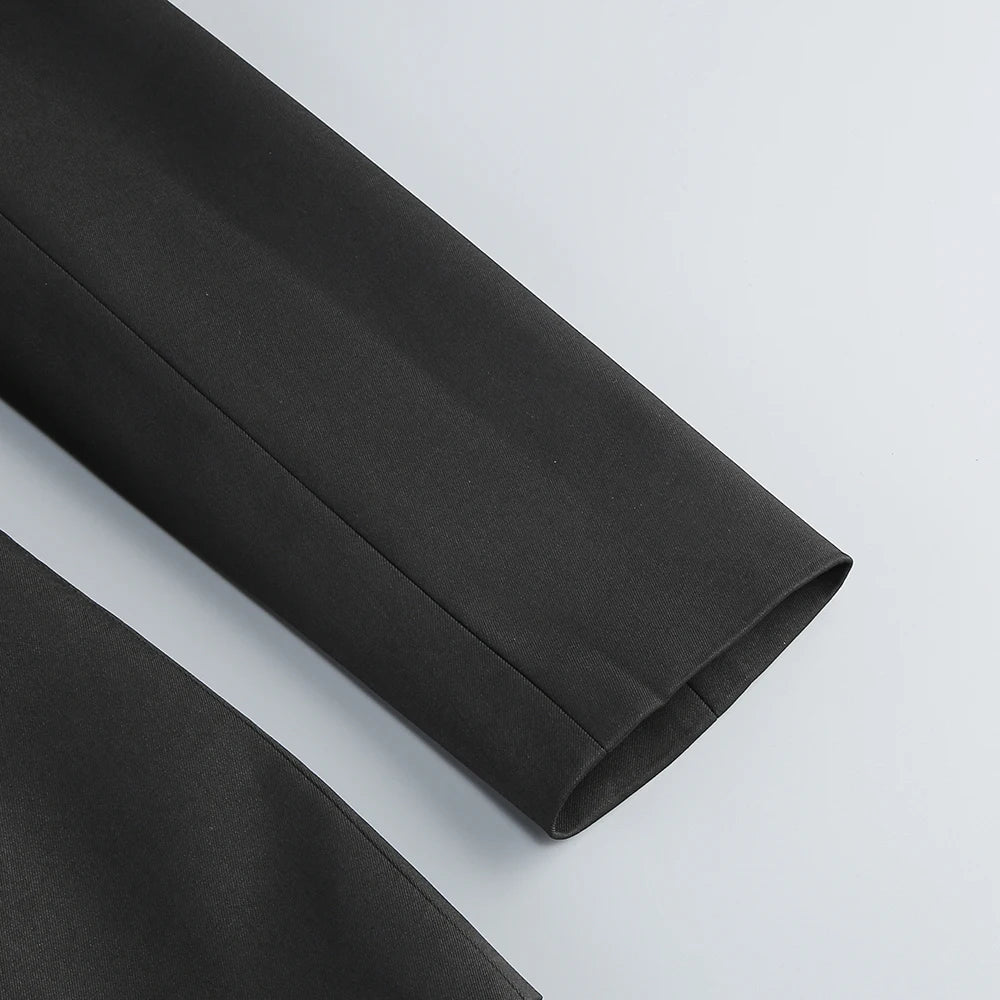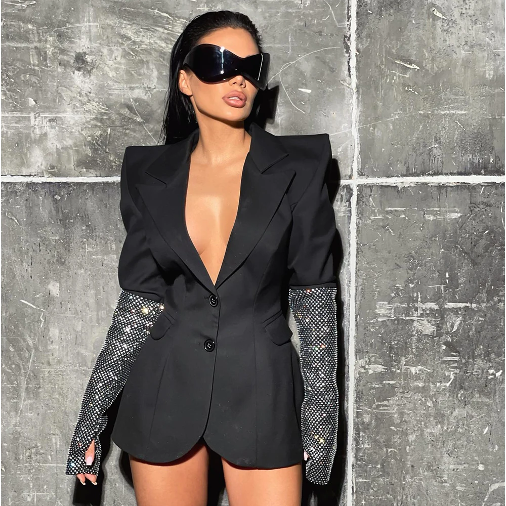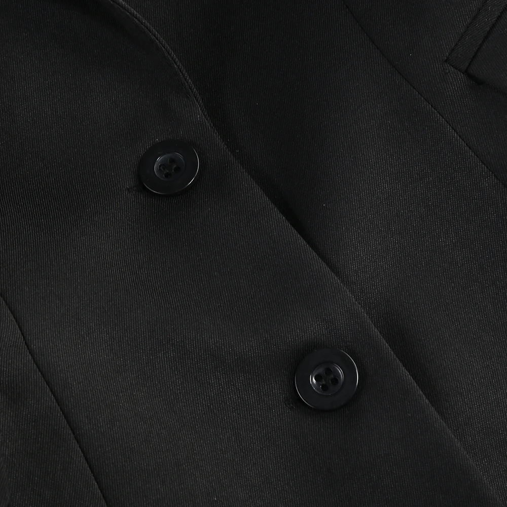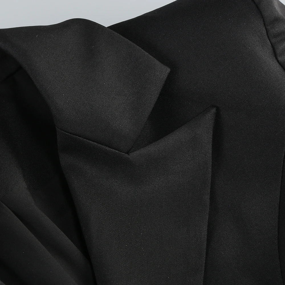 Women Horn-Shoulder Suit Deep V-Neck Slim Mini Skirt Cuff Splicing Single Breasted Sexy Dress Workplace High-Rise Commuter Wear