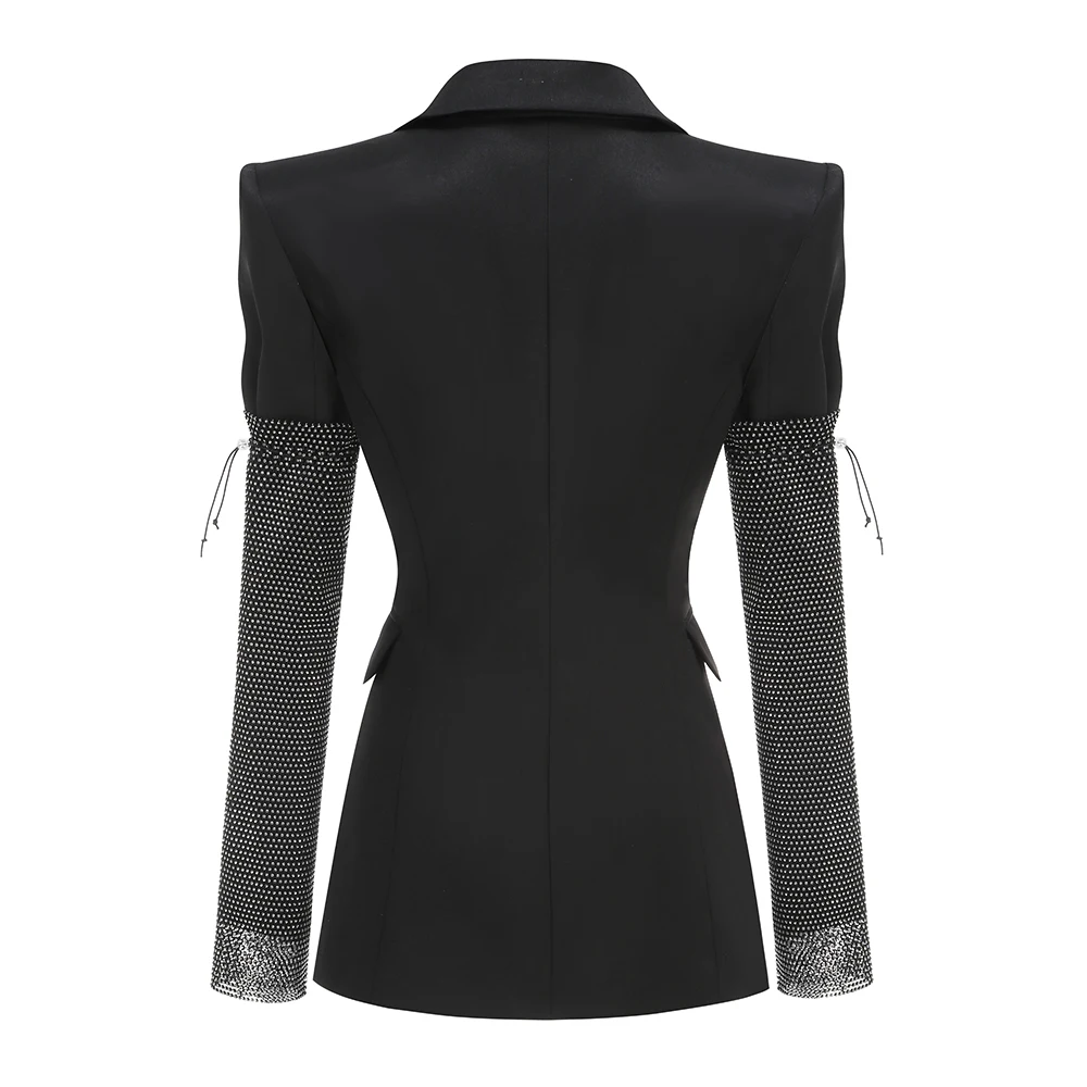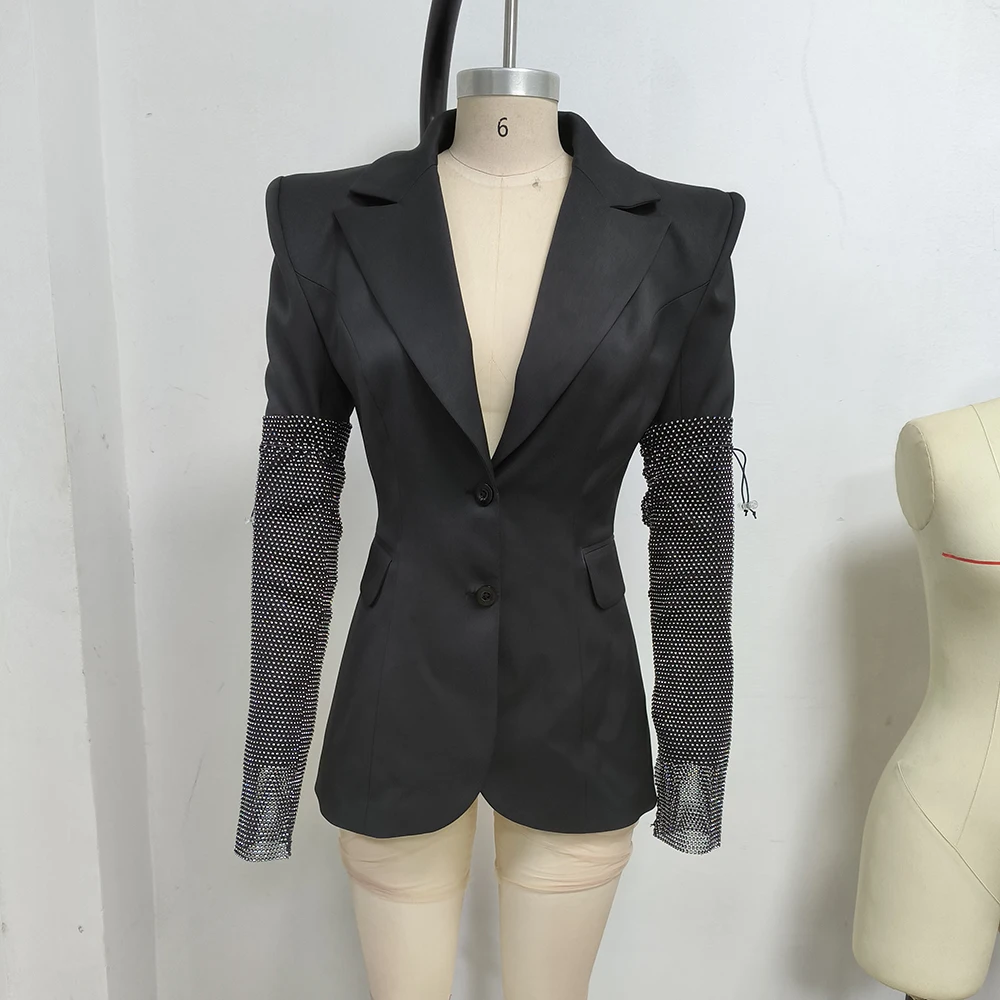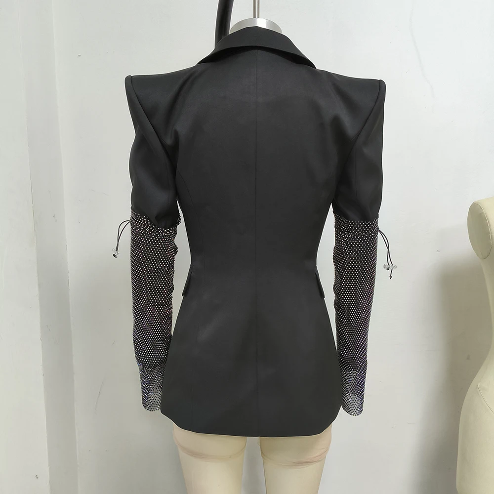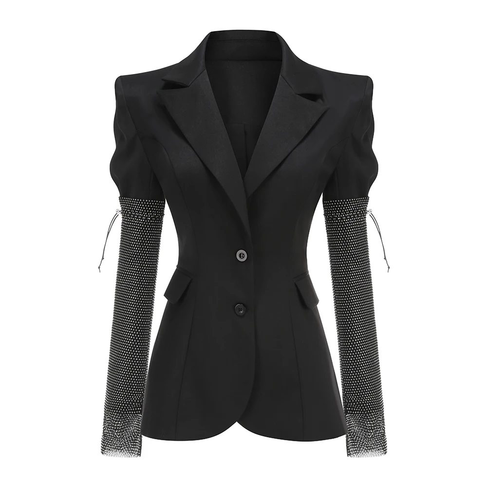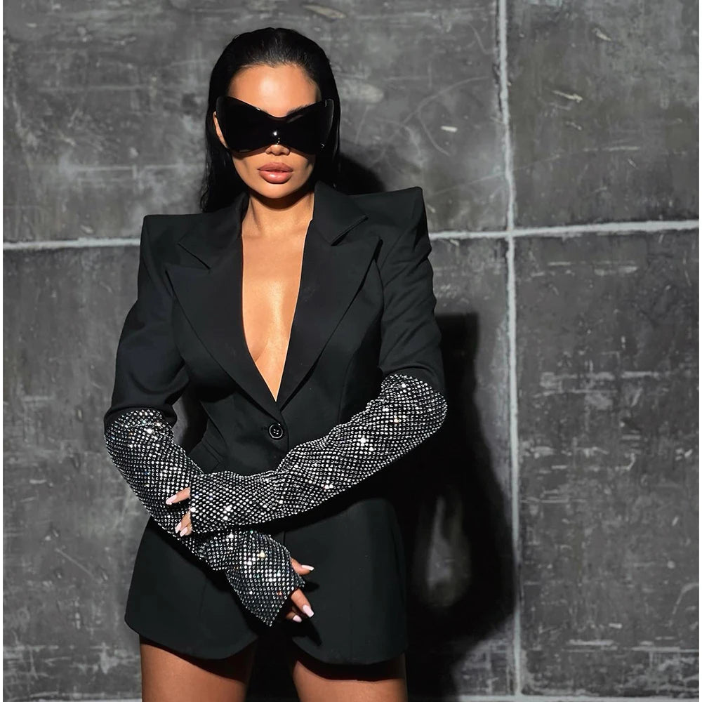 Women Horn-Shoulder Suit Deep V-Neck Slim Mini Skirt Cuff Splicing Single Breasted Sexy Dress Workplace High-Rise Commuter Wear
