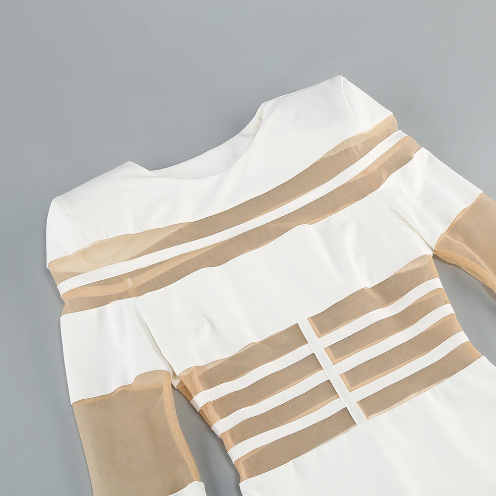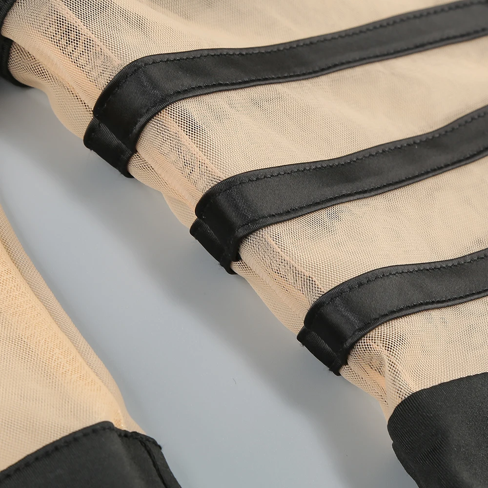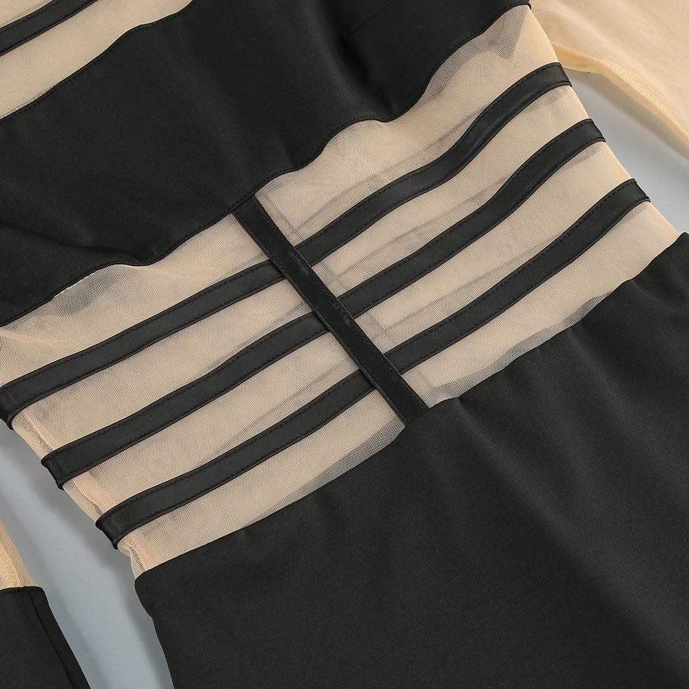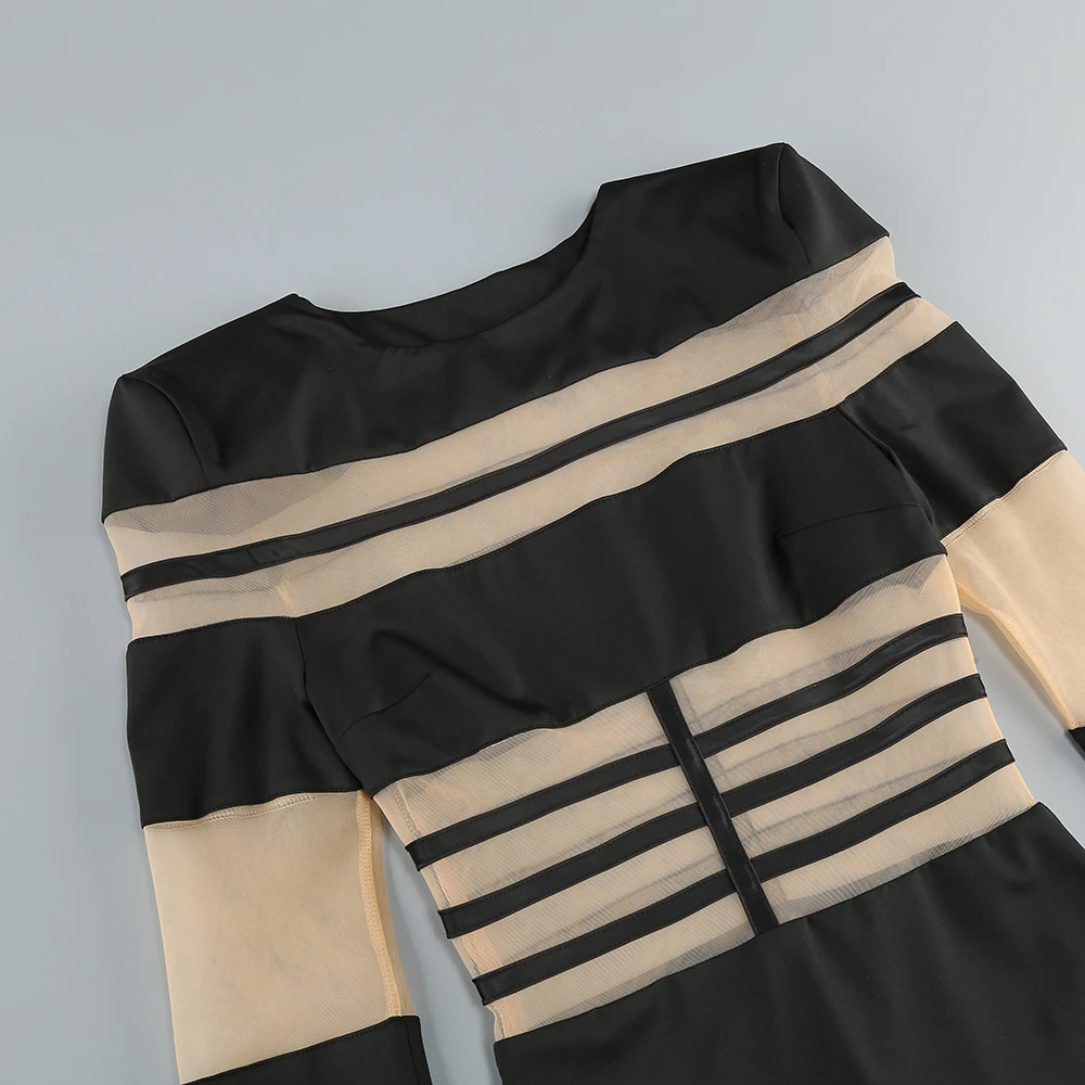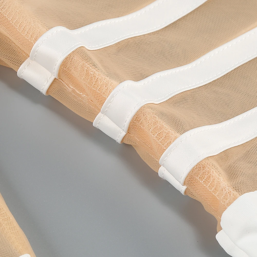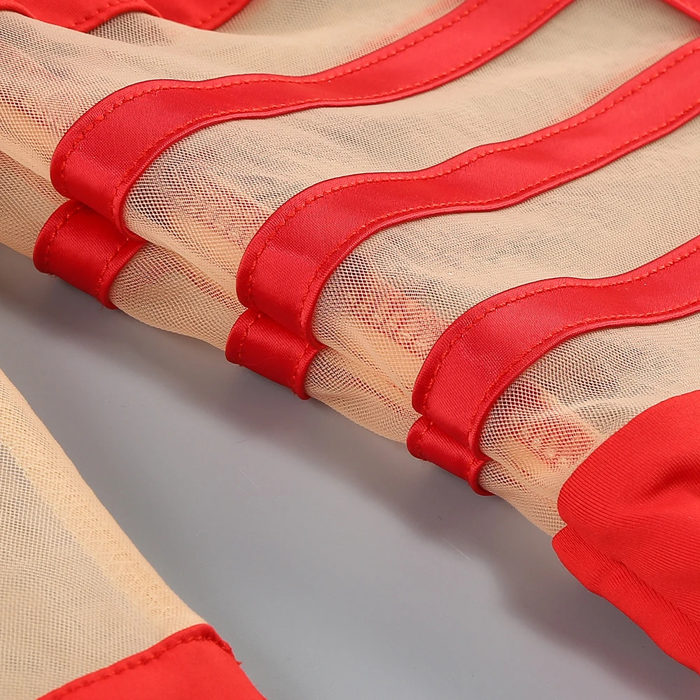 The dress adopts the slim-fit version, perfectly fits the body curve, and shows the feminine softness and sensuality vividly. The unique transparent mesh and cross-tie hollow details are bold and fashionable, inadvertently revealing a hint of looming temptation, achieving a wonderful balance between sexy and elegant.