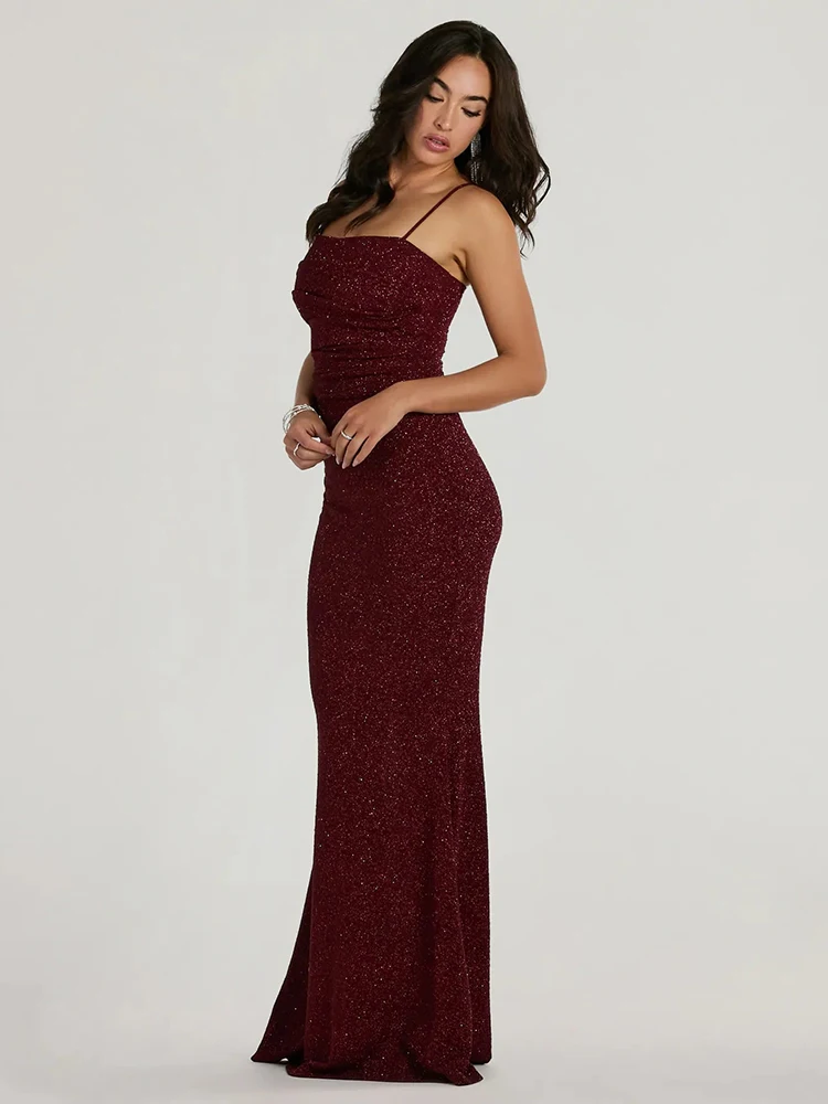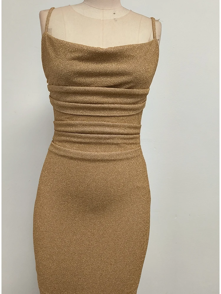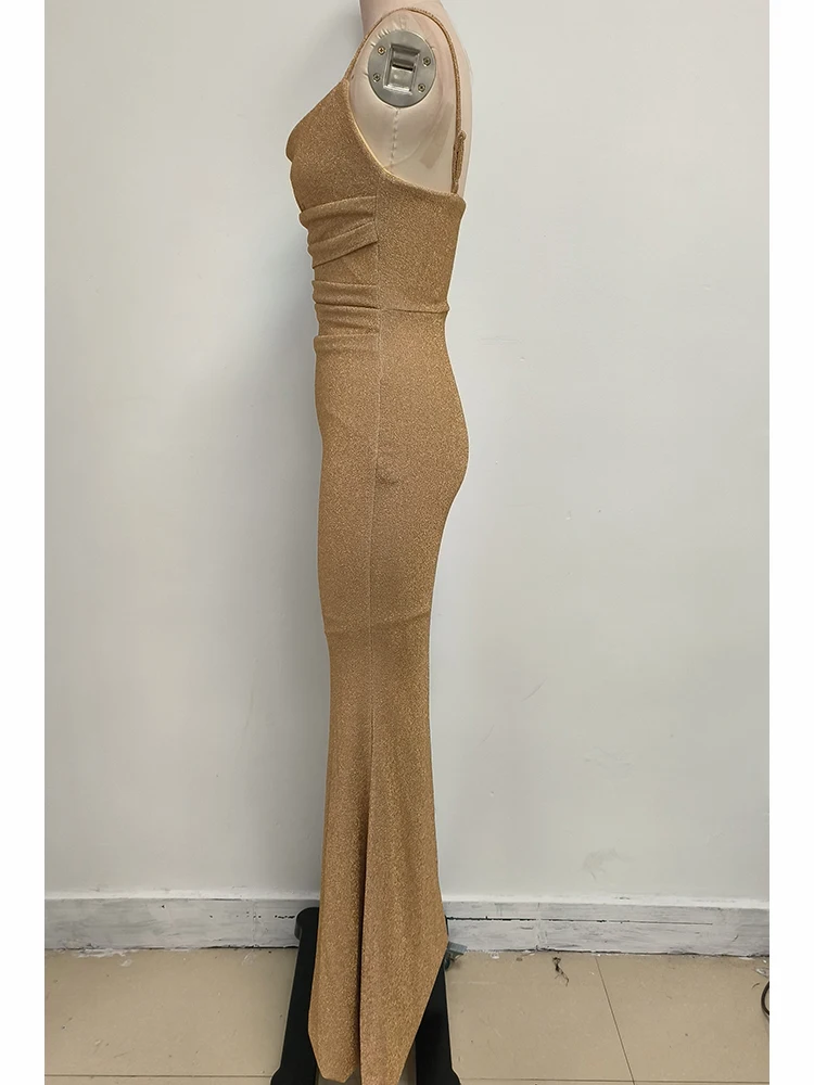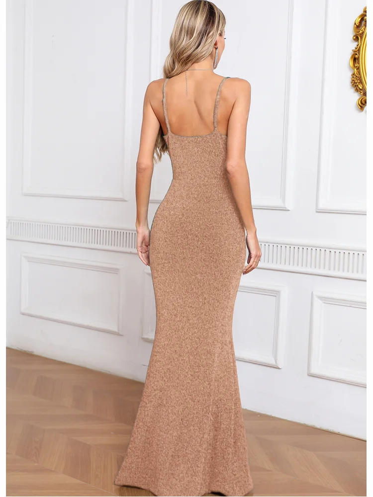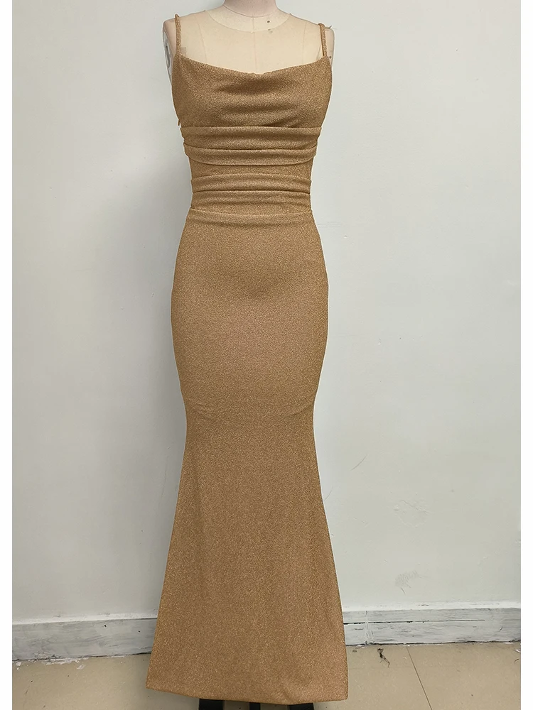 Women's Camel-Colored Spaghetti Strap Maxi Dress Ruched Mermaid-style Hot chick Slip Dress Evening Parties Special Occasions