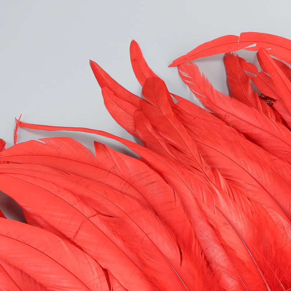 This dress features a strapless design with a dramatic feathered bodice, adding a touch of wild elegance and movement. The fitted waist accentuates your curves, leading to a flowing skirt that sparkles with every step. The combination of feathers and sequins creates a unique and luxurious texture.