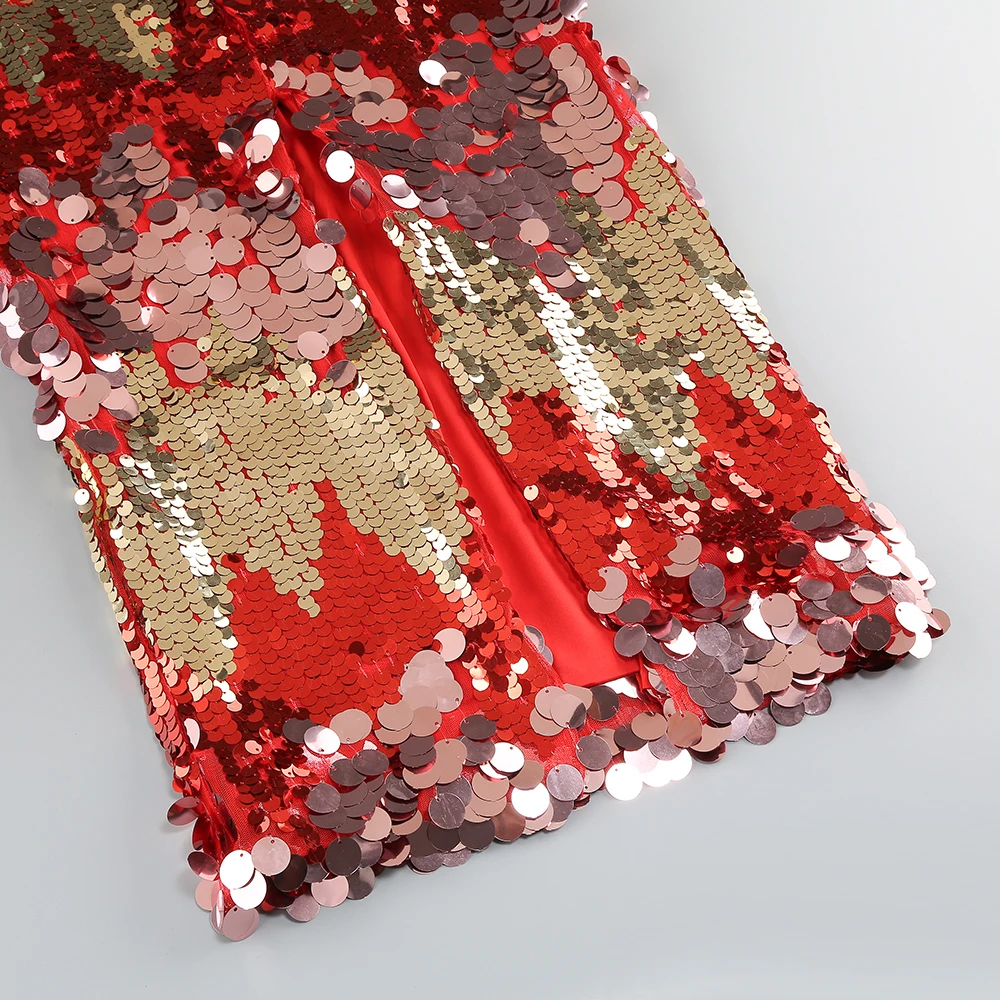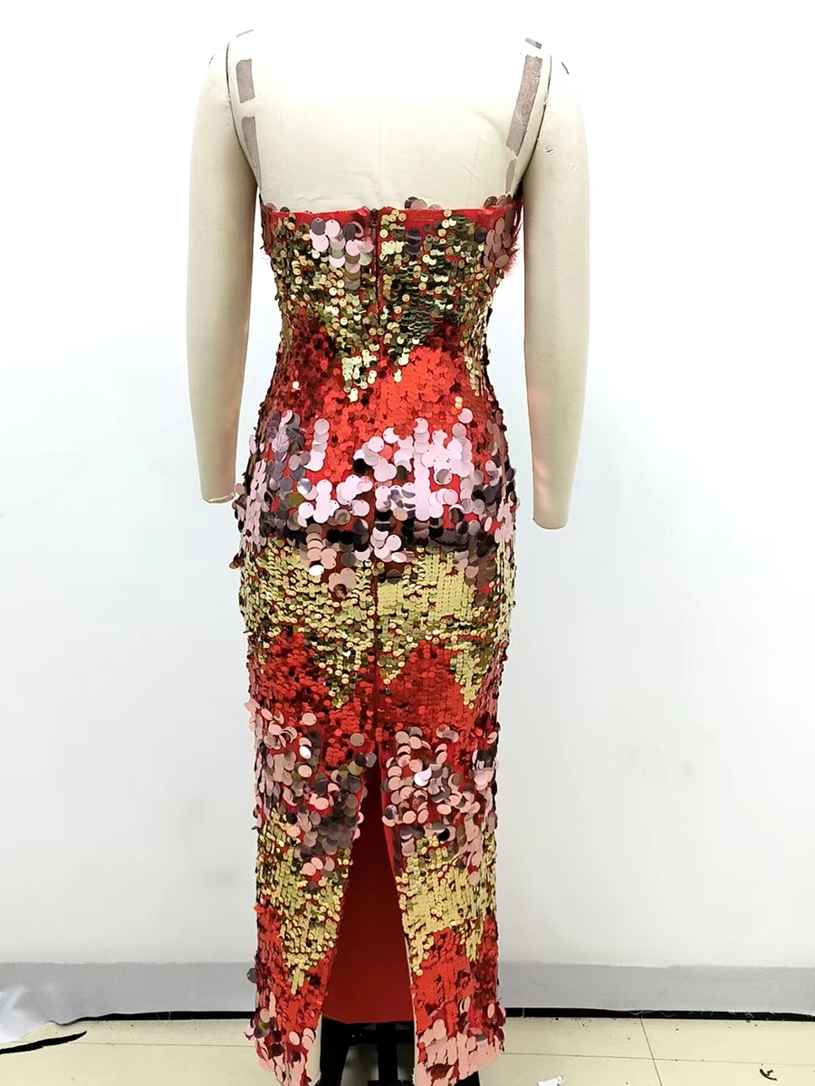 Dear fashionistas! 😍 Get ready to be the life of the party in this show - stopping sequined maxi dress! Crafted from top - notch fabric, it's lavishly adorned with a dazzling array of sequins in a vibrant mix of red, gold, and pink hues. The rich colors and shimmering sequins ensure you'll stand out in any crowd, exuding confidence and allure.