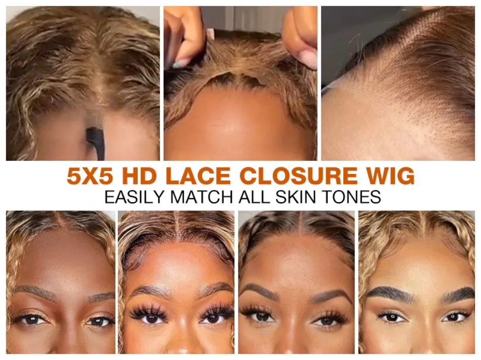 Pre Cut Lace Frontal Wigs: The wear and go glueless wigs human hair pre plucked pre cut lace is beginner friendly. Upgraded lace size from 4x4 to 5x5 hd lace closure wigs, you can do the middle part, side part, C part, or free part