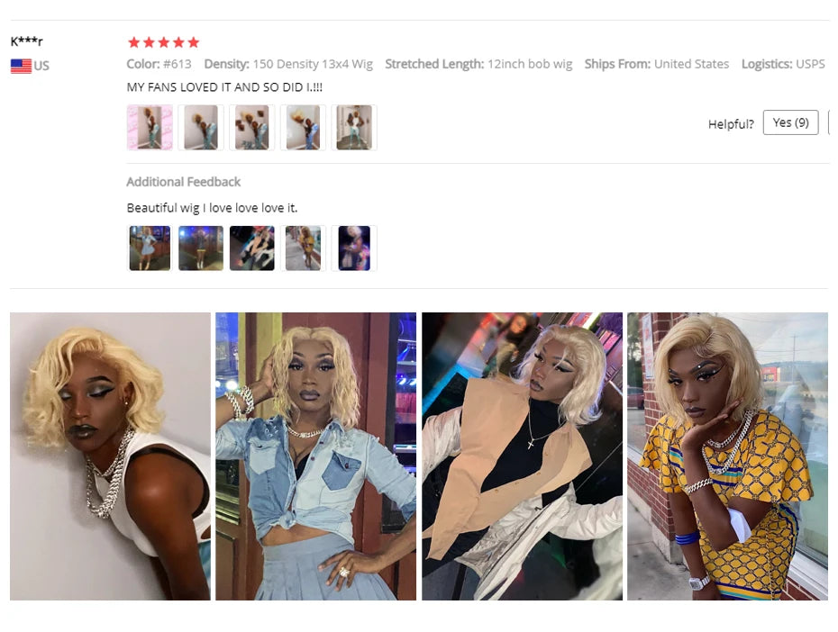 Item Name:613 Blonde bob wig lace front human hair wigs