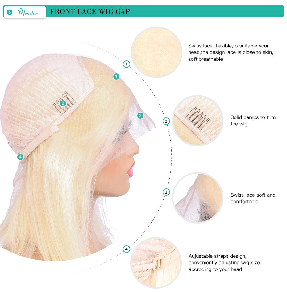 Hair Color: 613 light blonde lace front wigs.Very pure and takes color well.