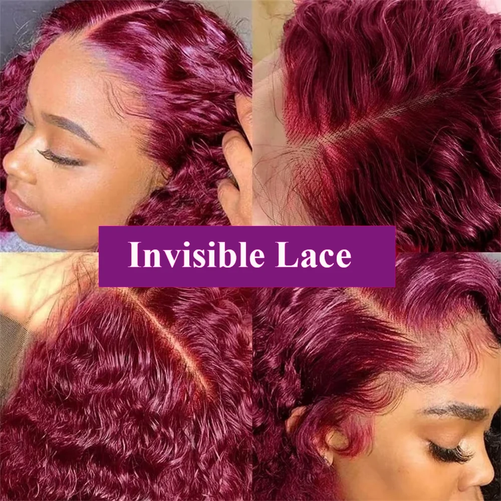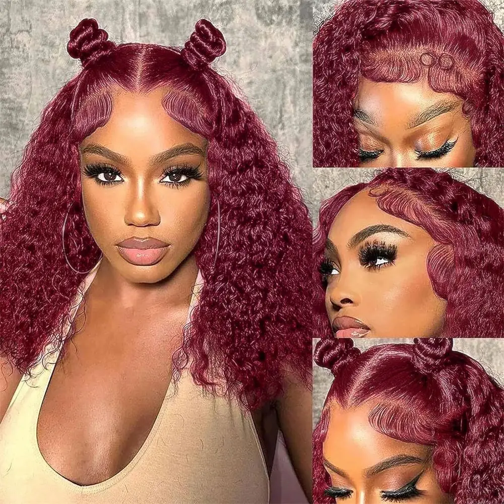 13X4 HD Lace Frontal Wig 99J Burgundy Deep Wave Short Bob Human Hair Wigs Curly Wave Red Bob Wig Pre Plucked 16 Inch Color Wigs