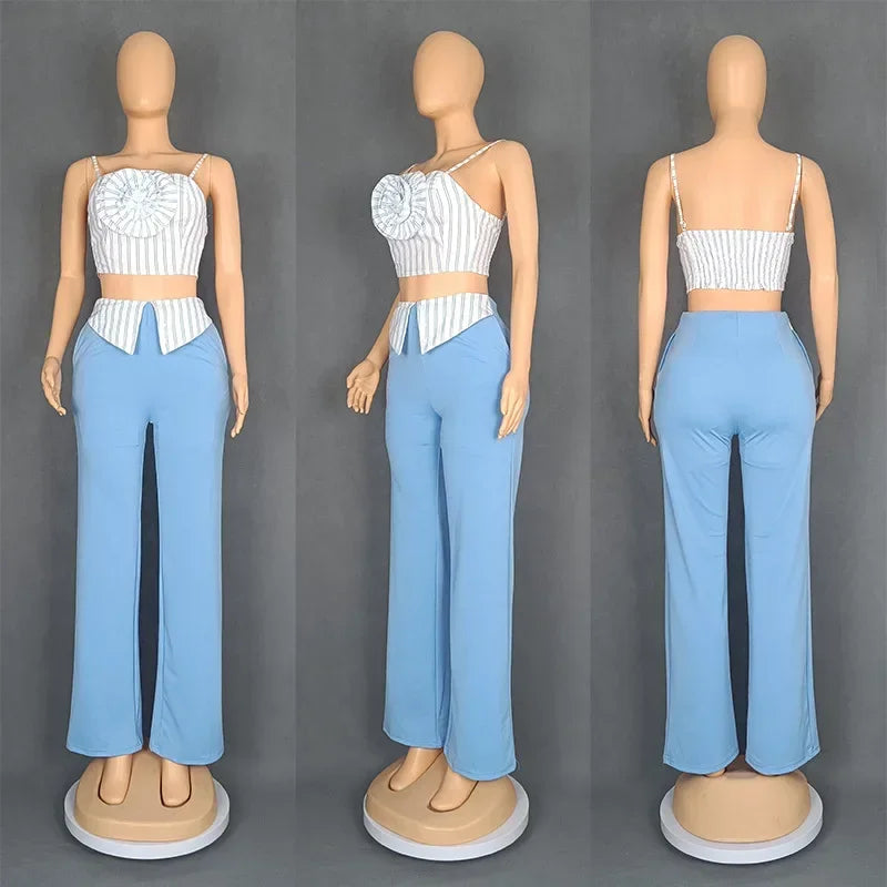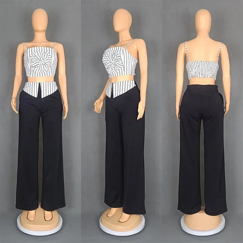 2 Piece African Clothes for Women Summer Sexy African Sleeveless Top Long Pant Matching Sets Dashiki African Clothing Outfits