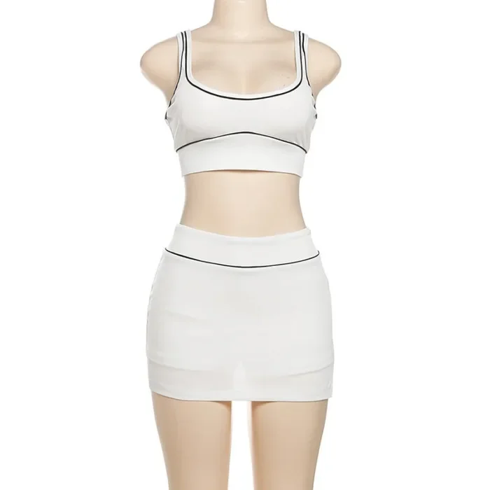 2 Piece Set Women Fashion Streetwear Outfits Sexy Hot Girl Short Tank Top & Wrap Hip Mini Skirt Sports Casual Suit 2025 Summer