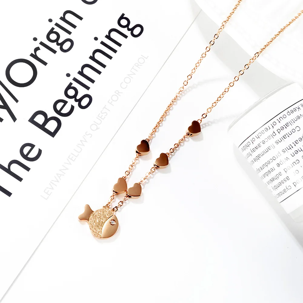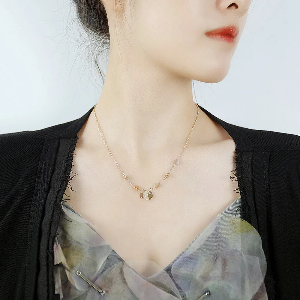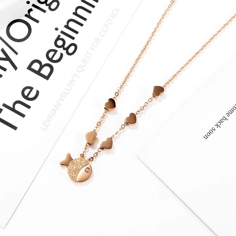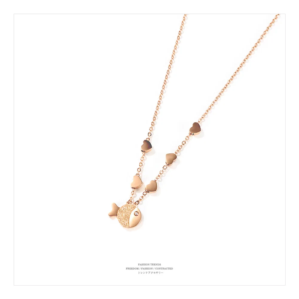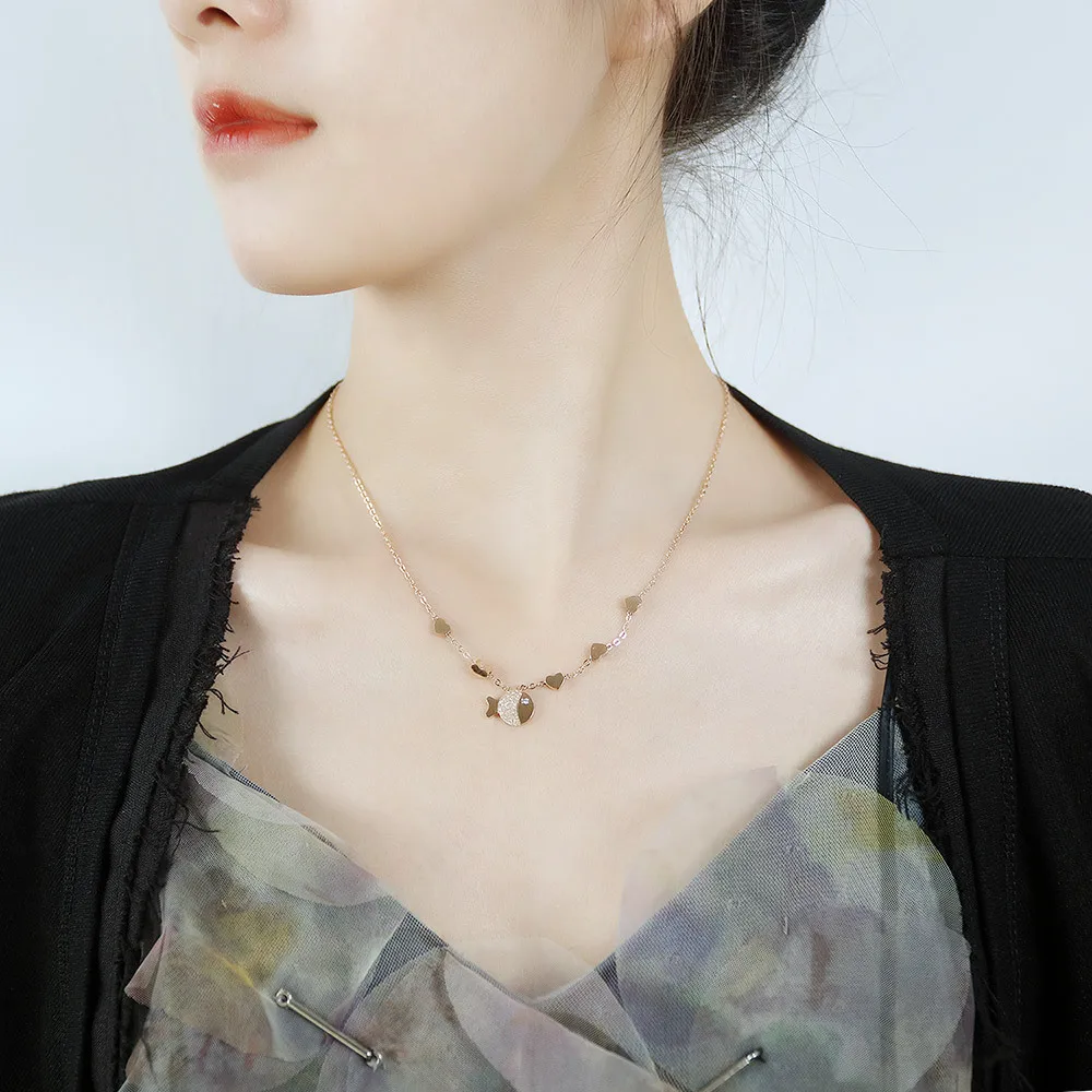Fashion charm Small fish pendant necklace unique rose gold plated with diamonds necklace for women