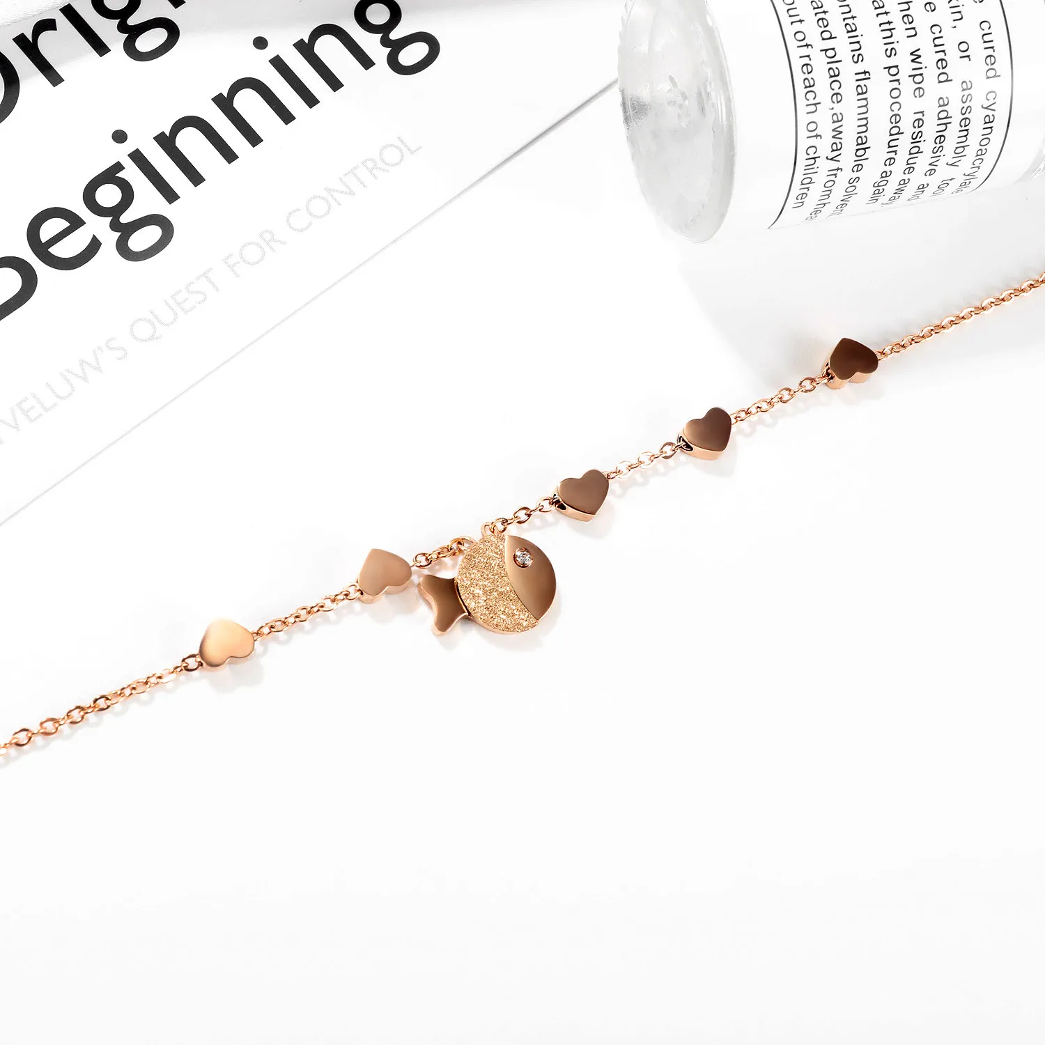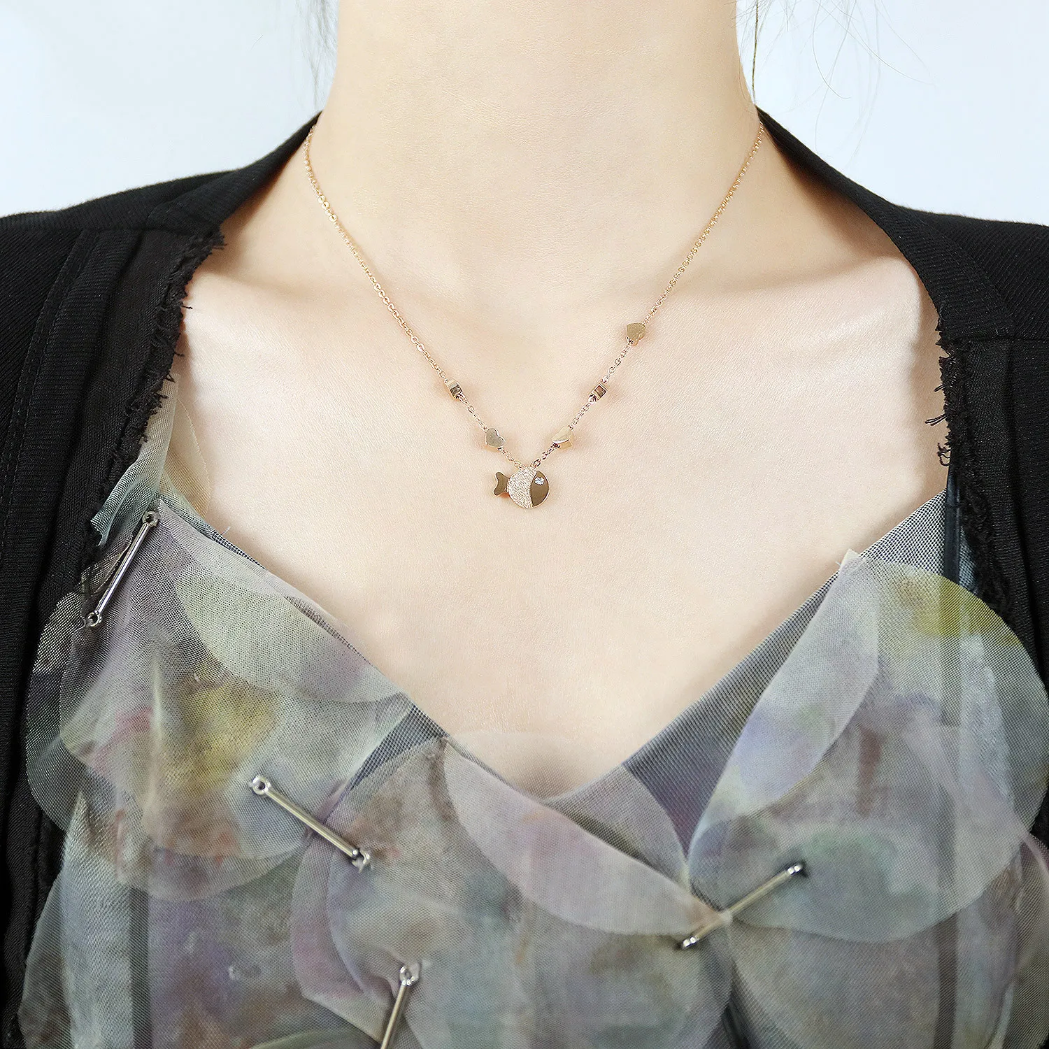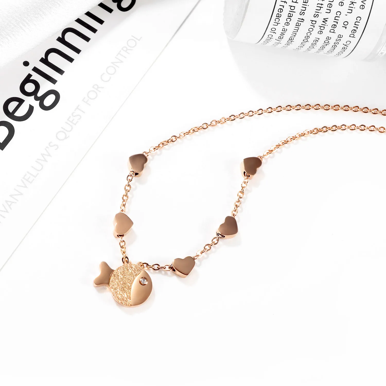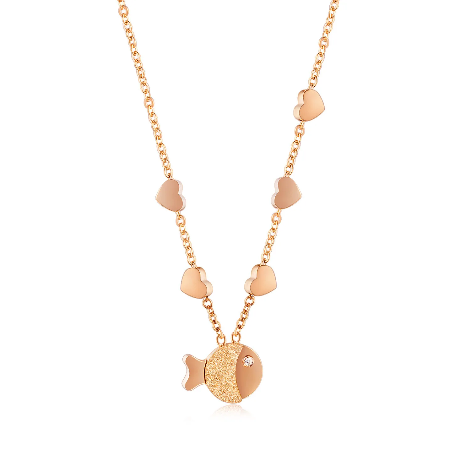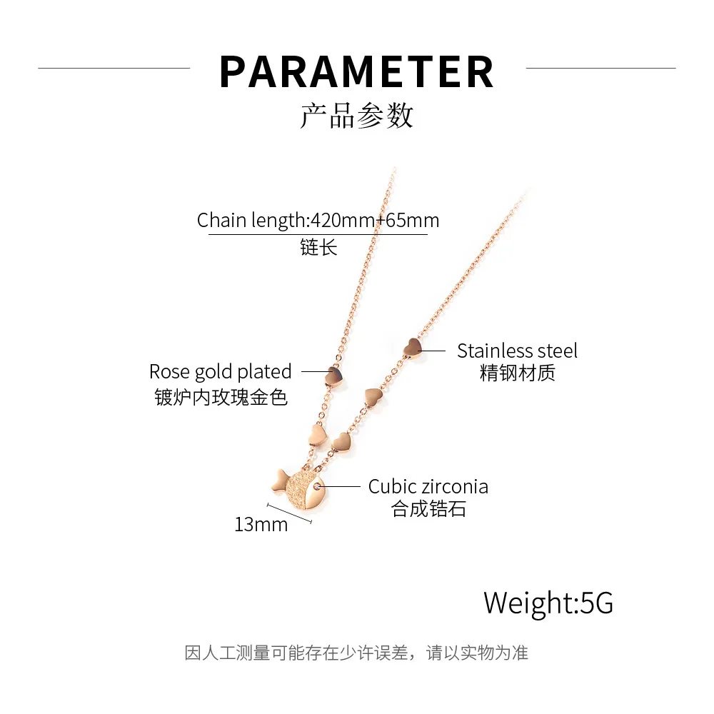 Fashion charm Small fish pendant necklace unique rose gold plated with diamonds necklace for women