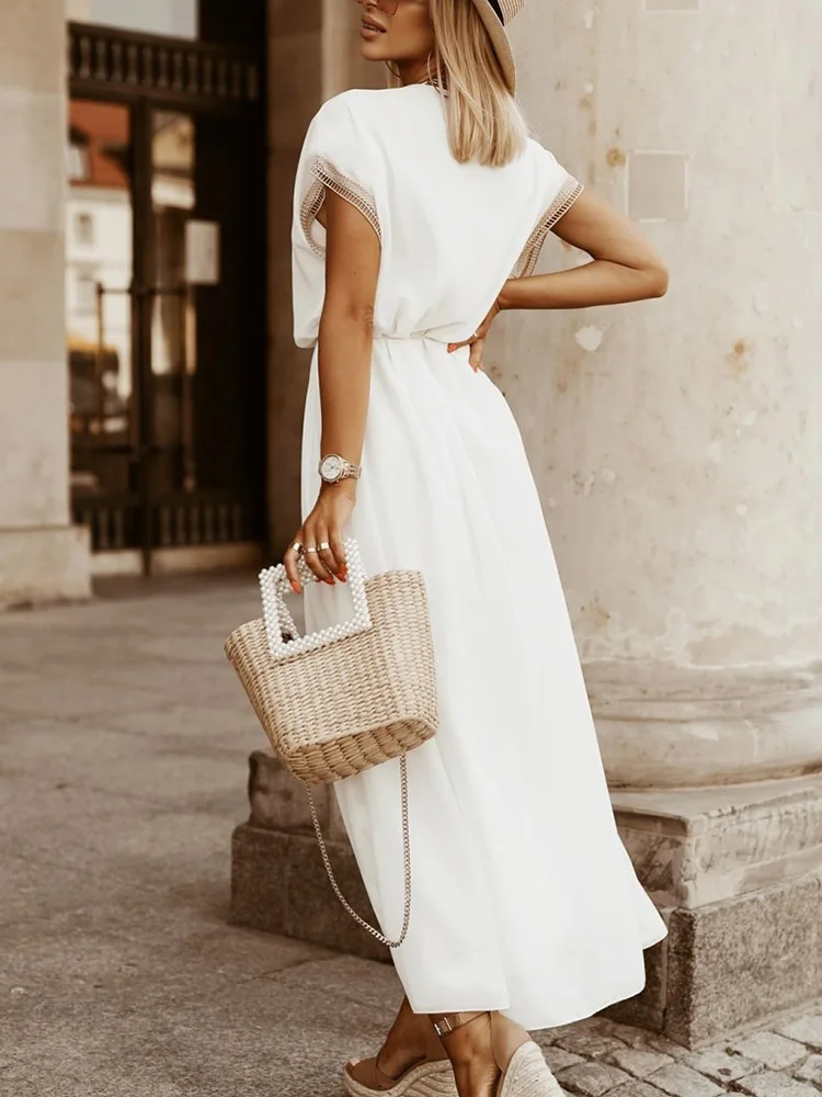 2022 New Women Deep V-Neck Loungewear Mini Dress Summer Solid Short Sleeve Ladies Party Dress Simple Lace-Up Streetwear Vestidos