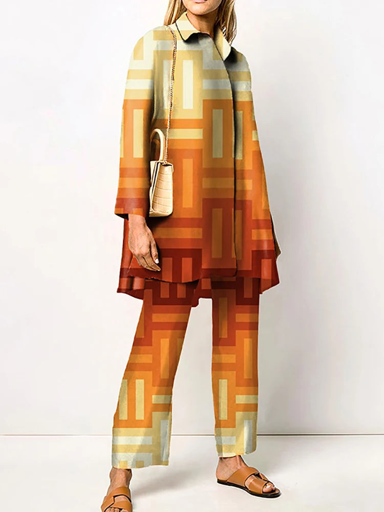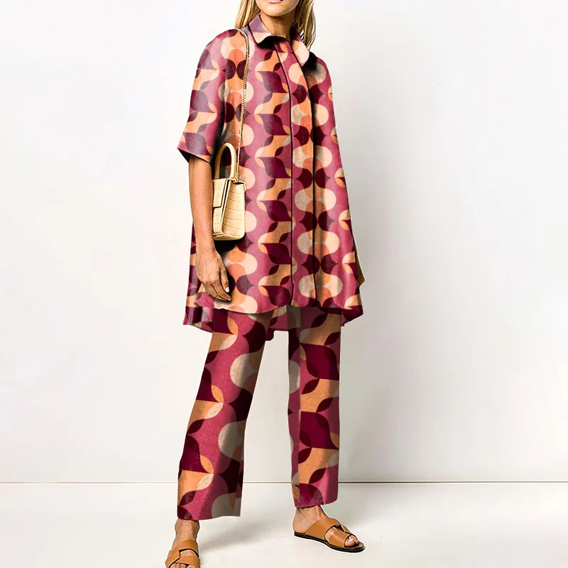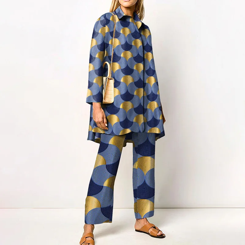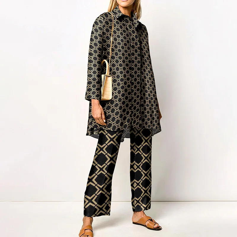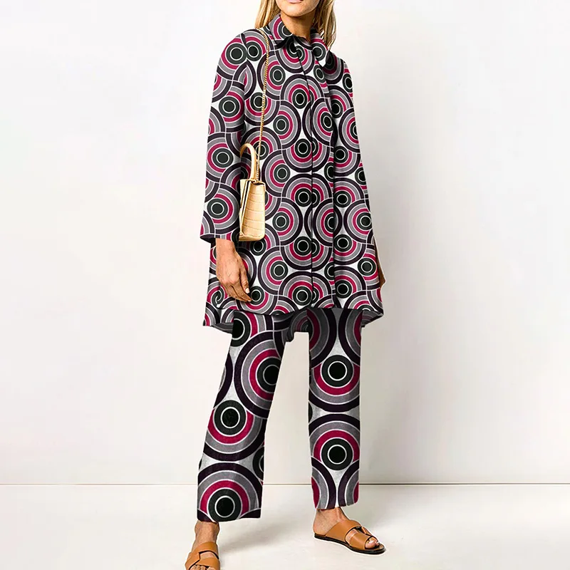 2022 Sets Womens Outfits Elegant Loungewear Print Spring Autumn 2PCS Ladies Suit Long Sleeve Wide Leg Pants Loose Fit Streetwear