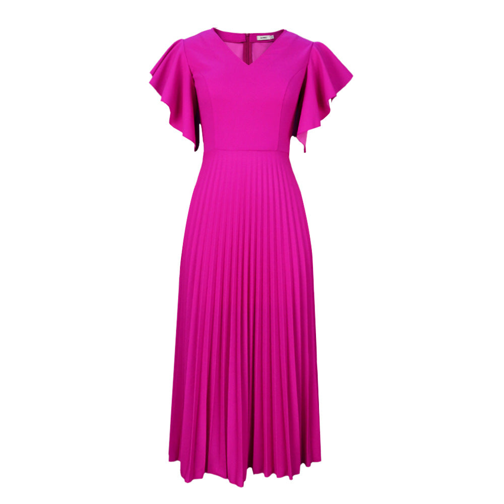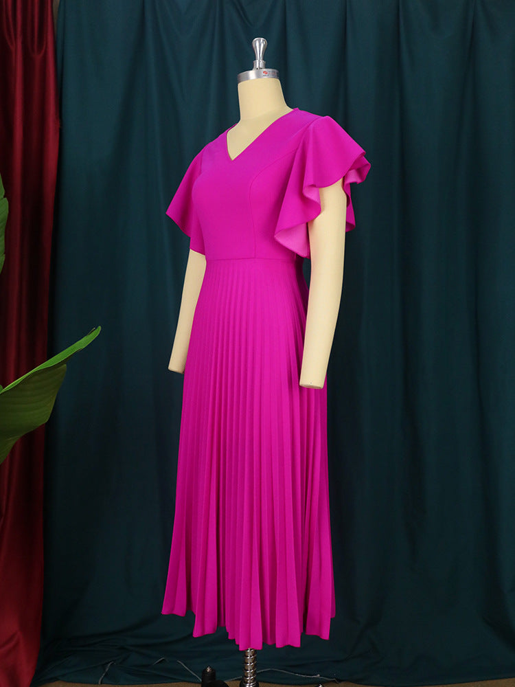 2022 Women Summer v-neck medium length pleated plus-size women rose red dress banquet dress