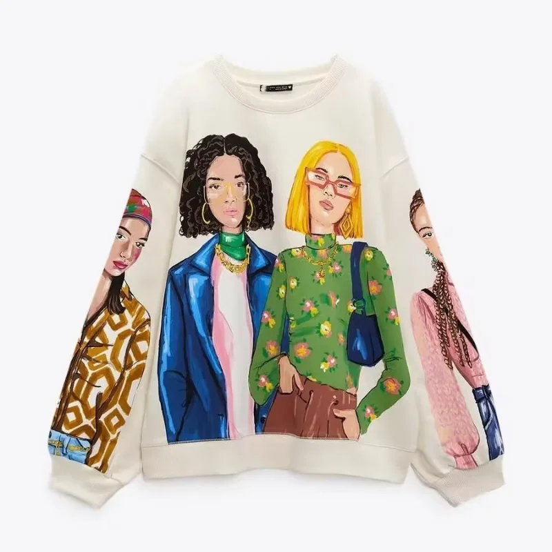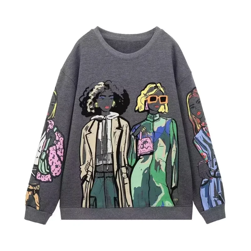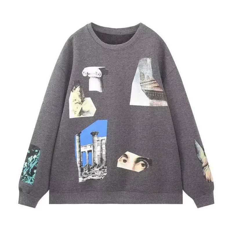 2023 Autumn New Women's Versatile Face Pattern Print Pullover Loose Long Sleeve T-shirt