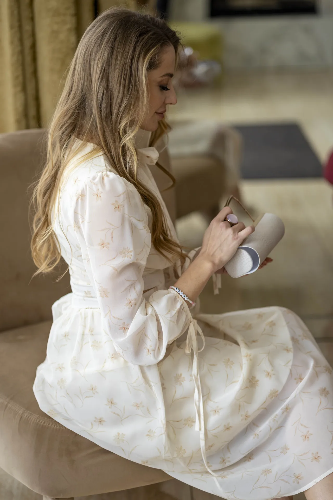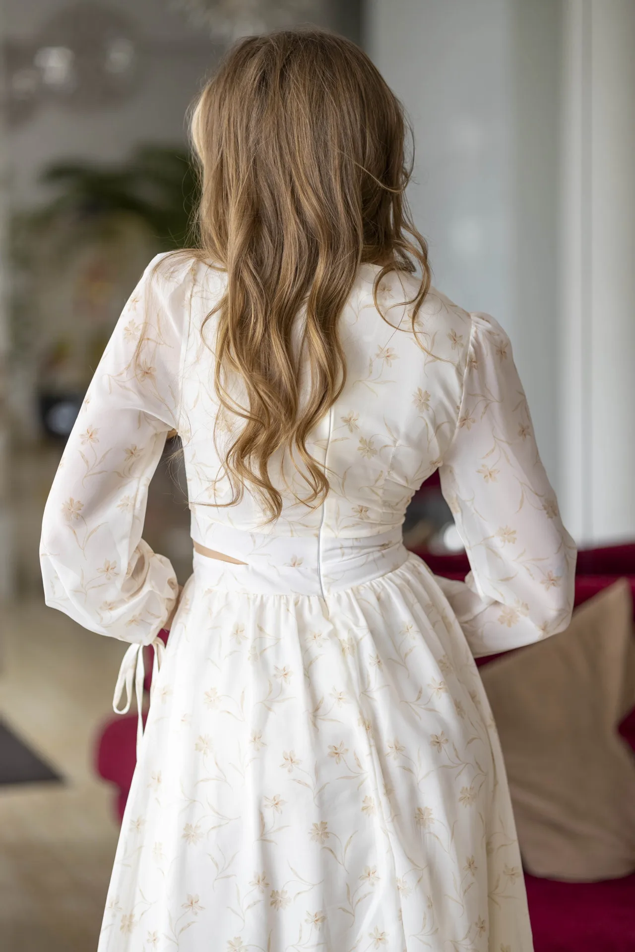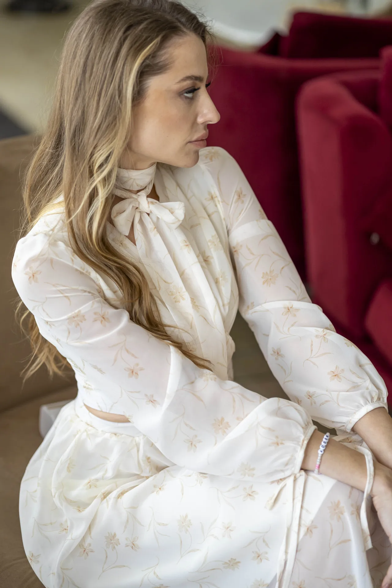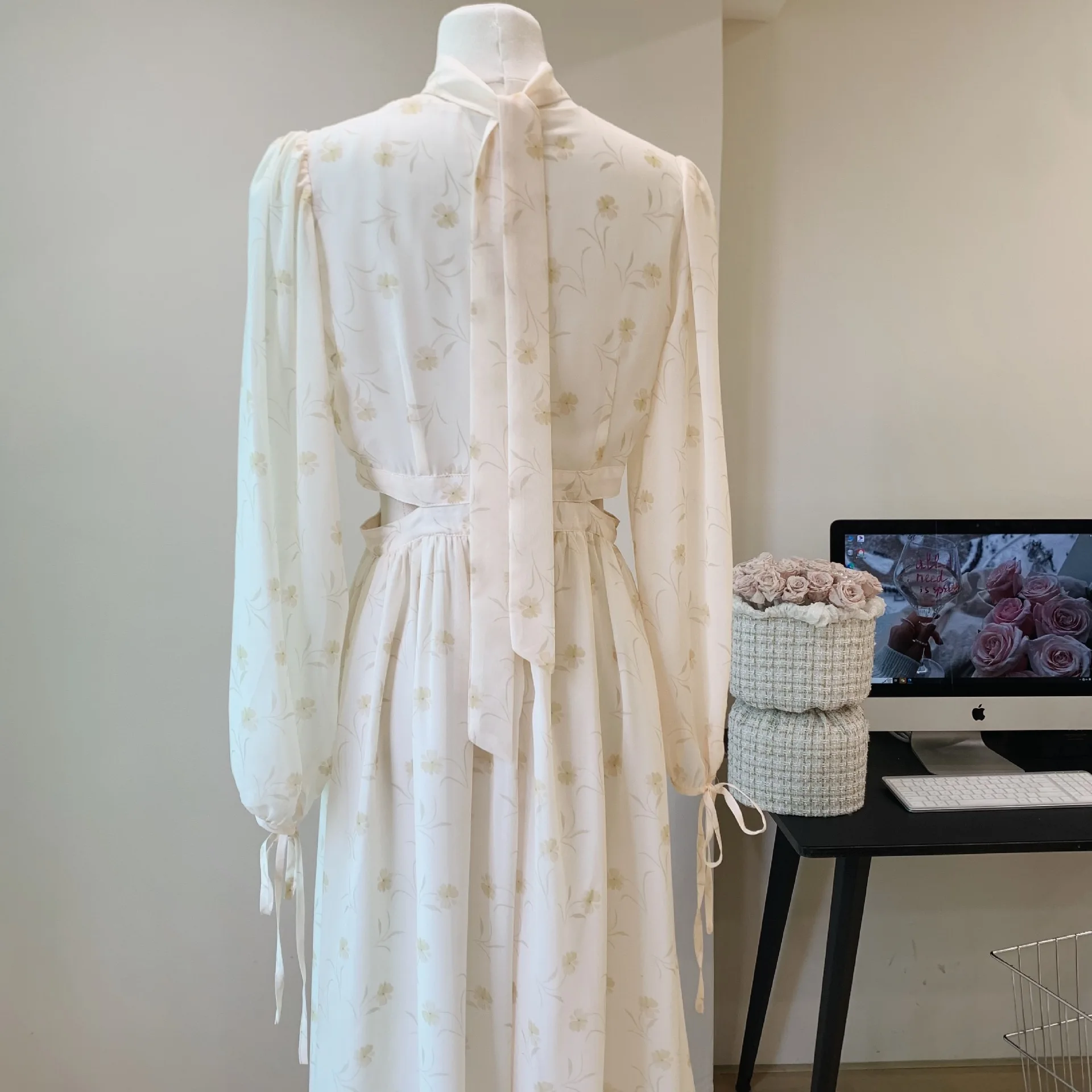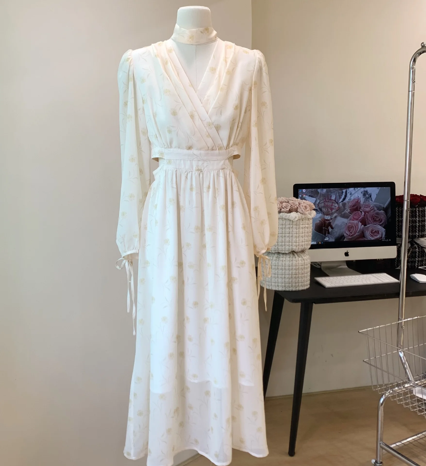2023 Autumn Temperament Chiffon Fashion Elegant V-neck High Waist Slimming Backless Floral Dress