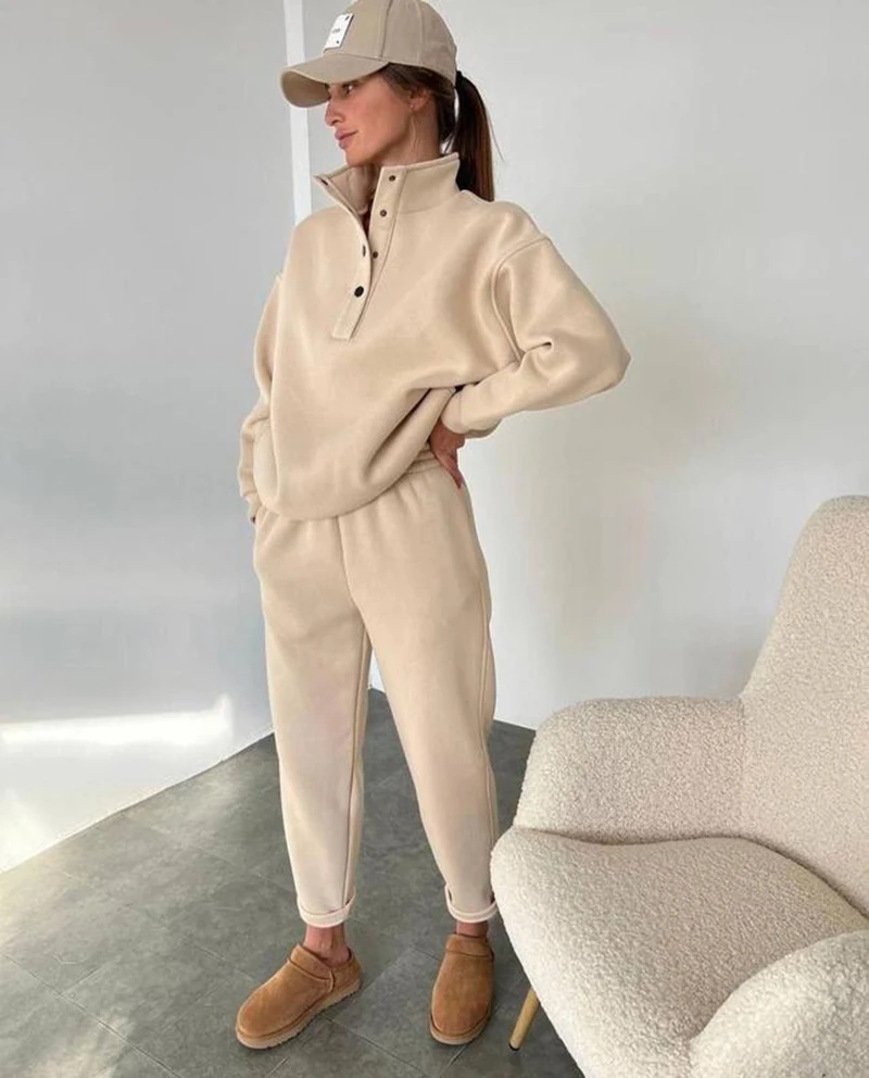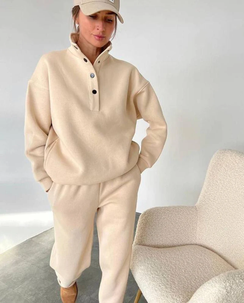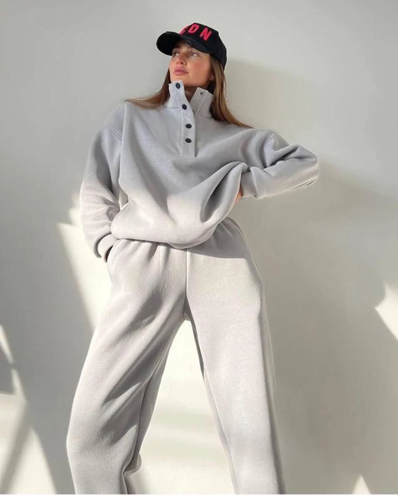2023 Autumn Winter Buttons Turtleneck Sweatshirts Harem Pants Set Women Tracksuits Fleece Warm Female Joggers Hoodie 2 Piece Set