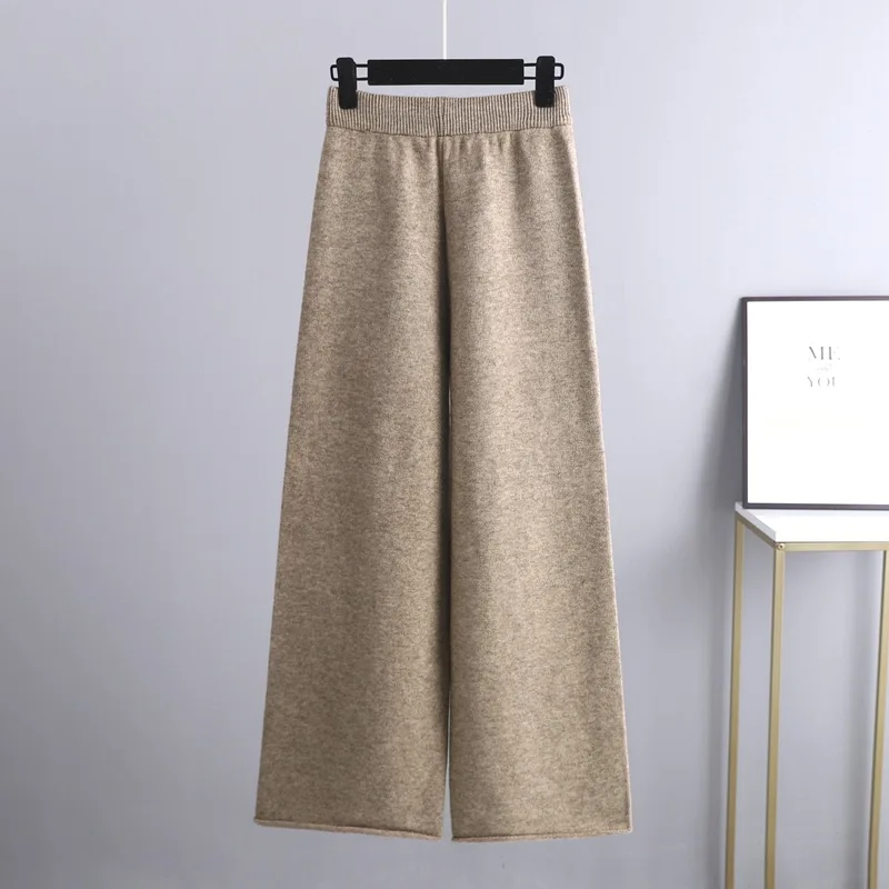 2023 Autumn Winter Two Piece Sets for Women Thick Warm Loose Turtleneck Sweater And High Waist Wide Leg Pants Tracksuit Women