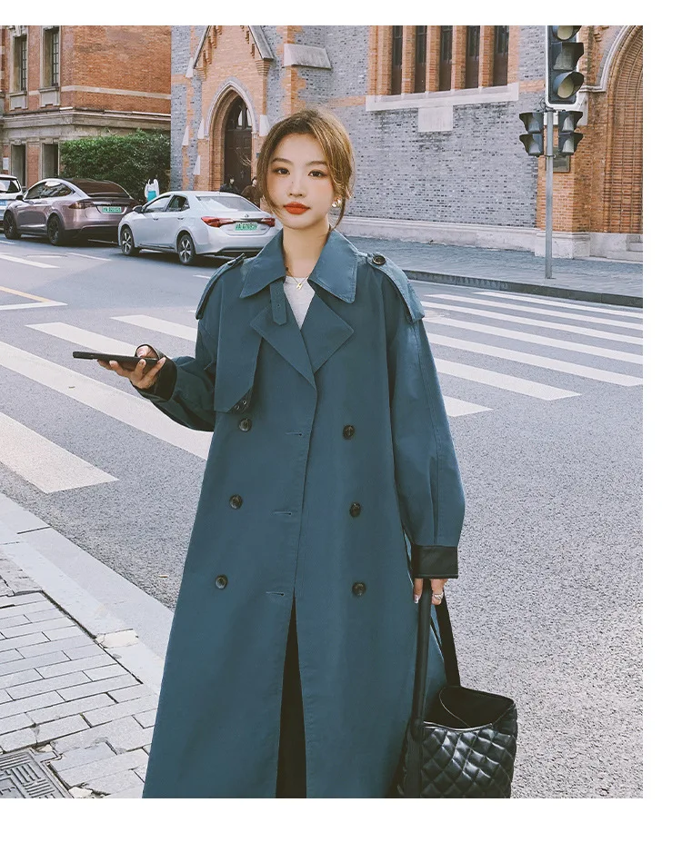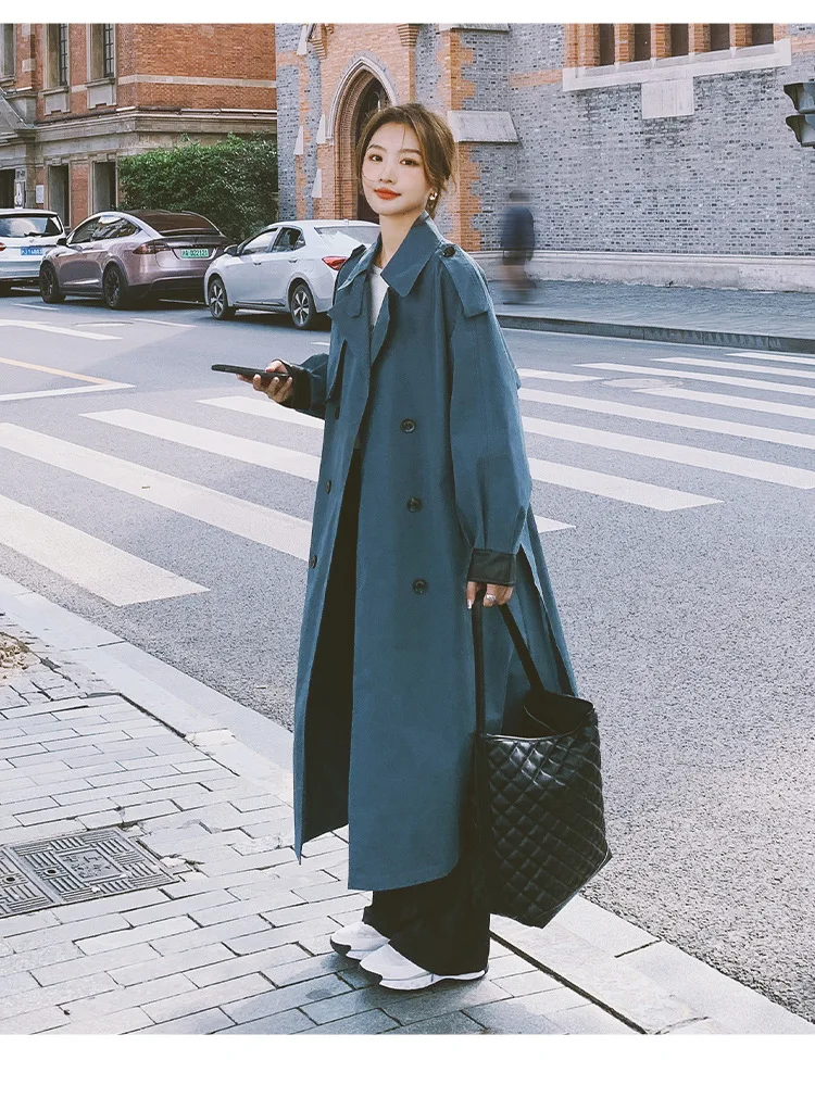 2023 Bettergirl Autumn New Women's Trench Coat Button Double Breasted Coat In The Long Loose Temperament Coat