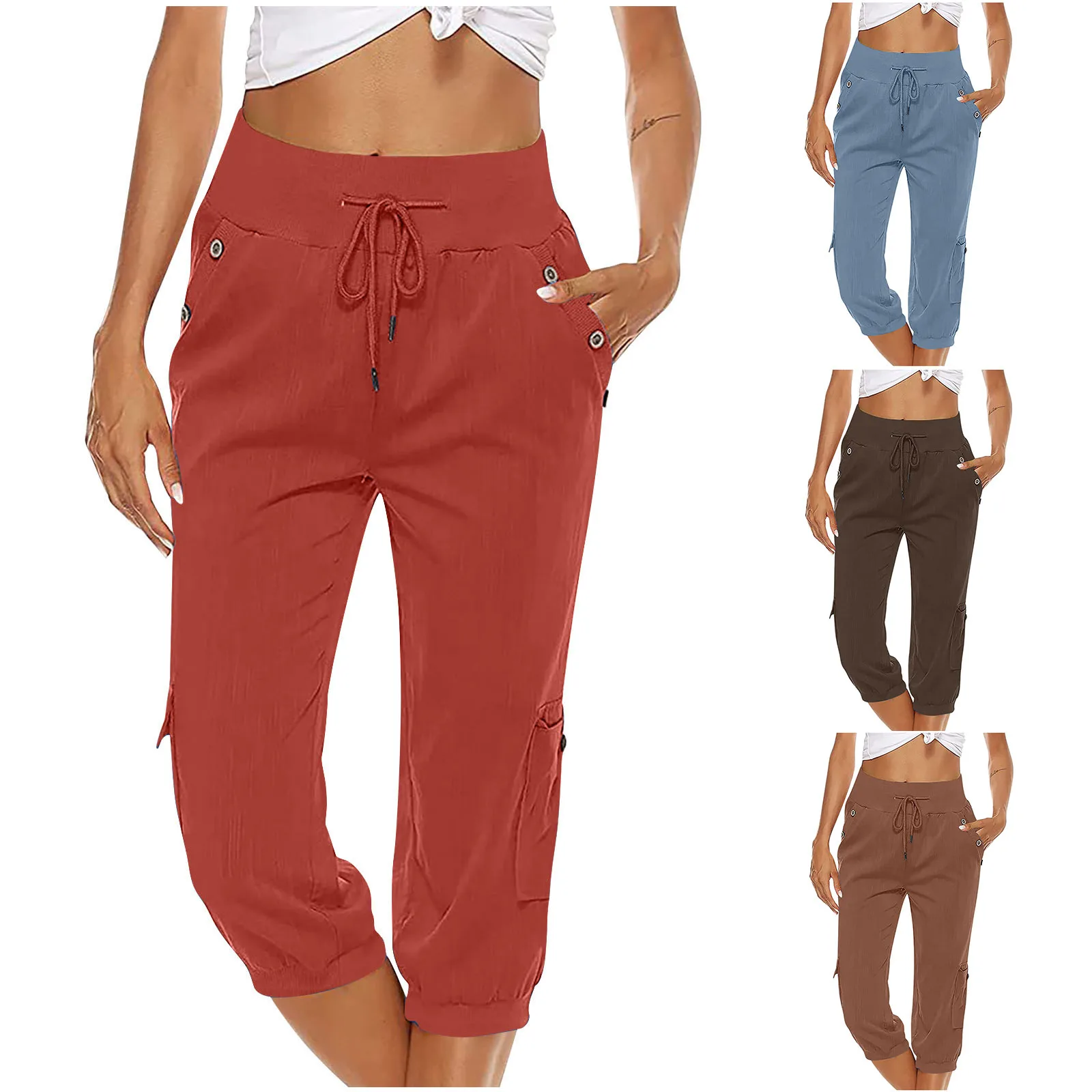 2023 Capri Pants Women Capri Leggings Lightweight Summer Casual Plus Size High Waist Stretch Pants with Pockets Cropped Trousers
