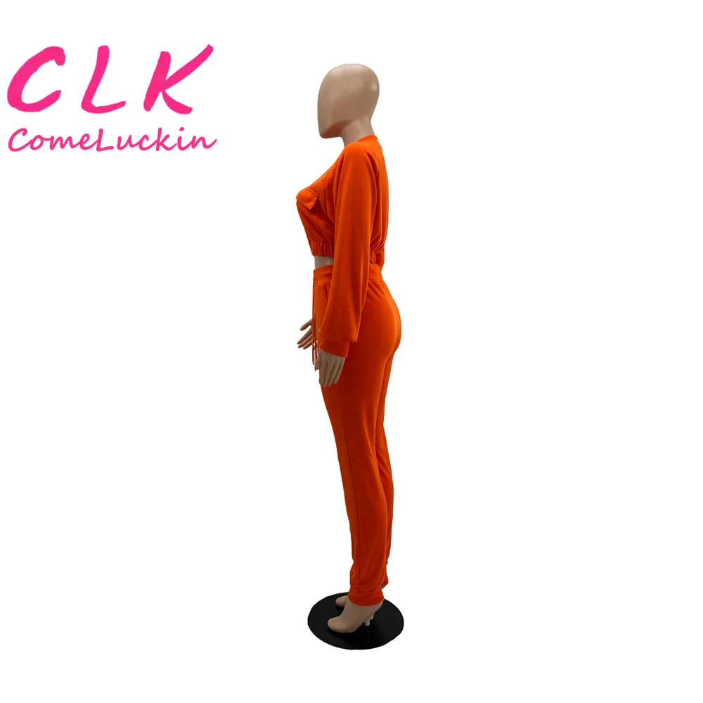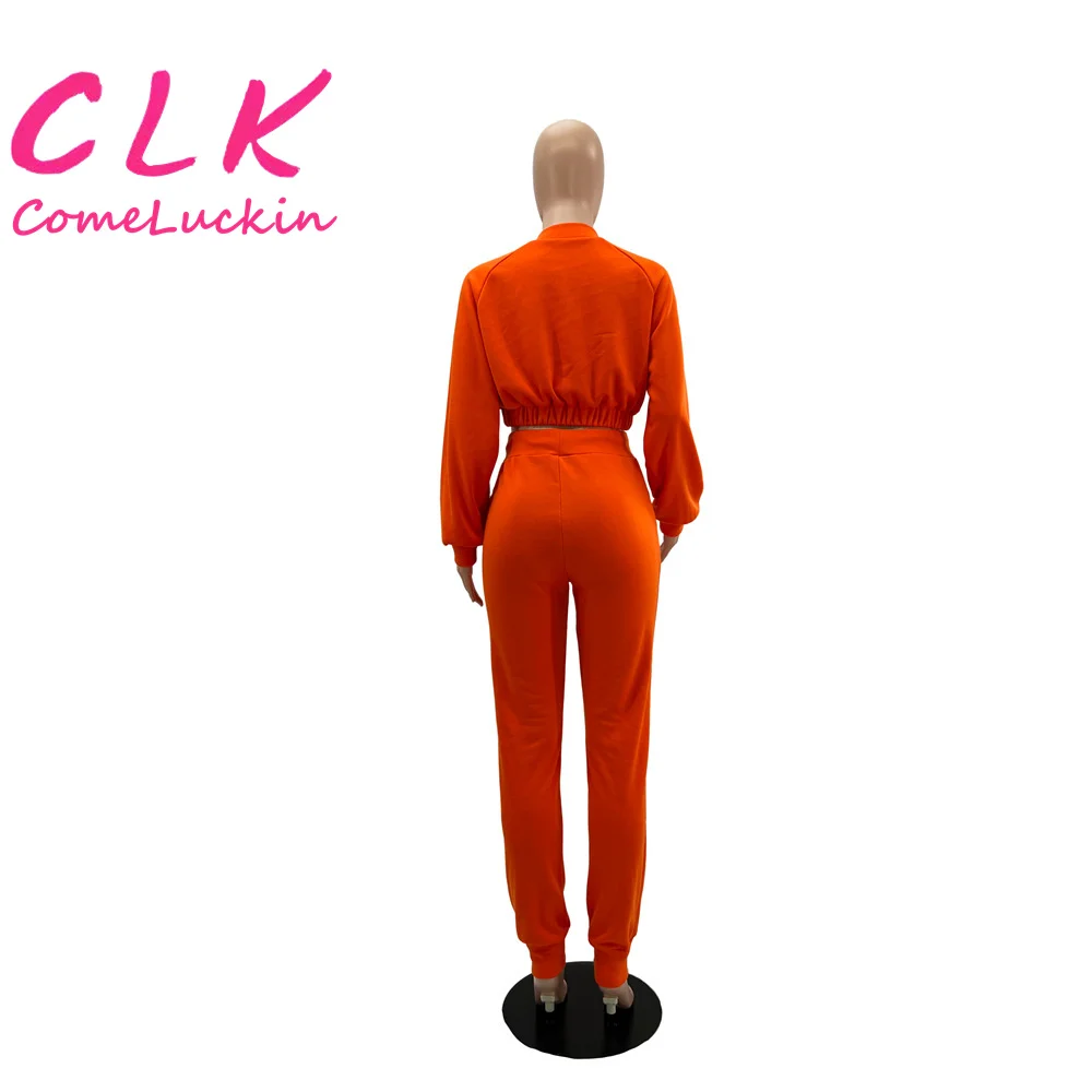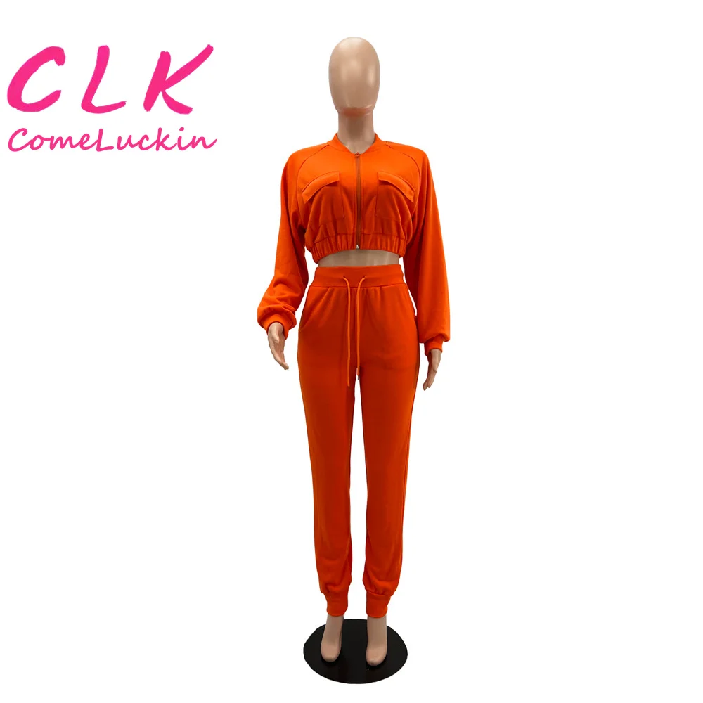2023 Custom Logo women casual two piece sets cargo jogging pants jogger sets cropped jackets tracksuits for women