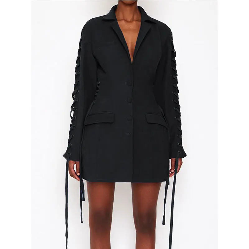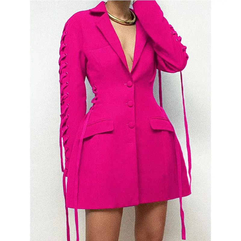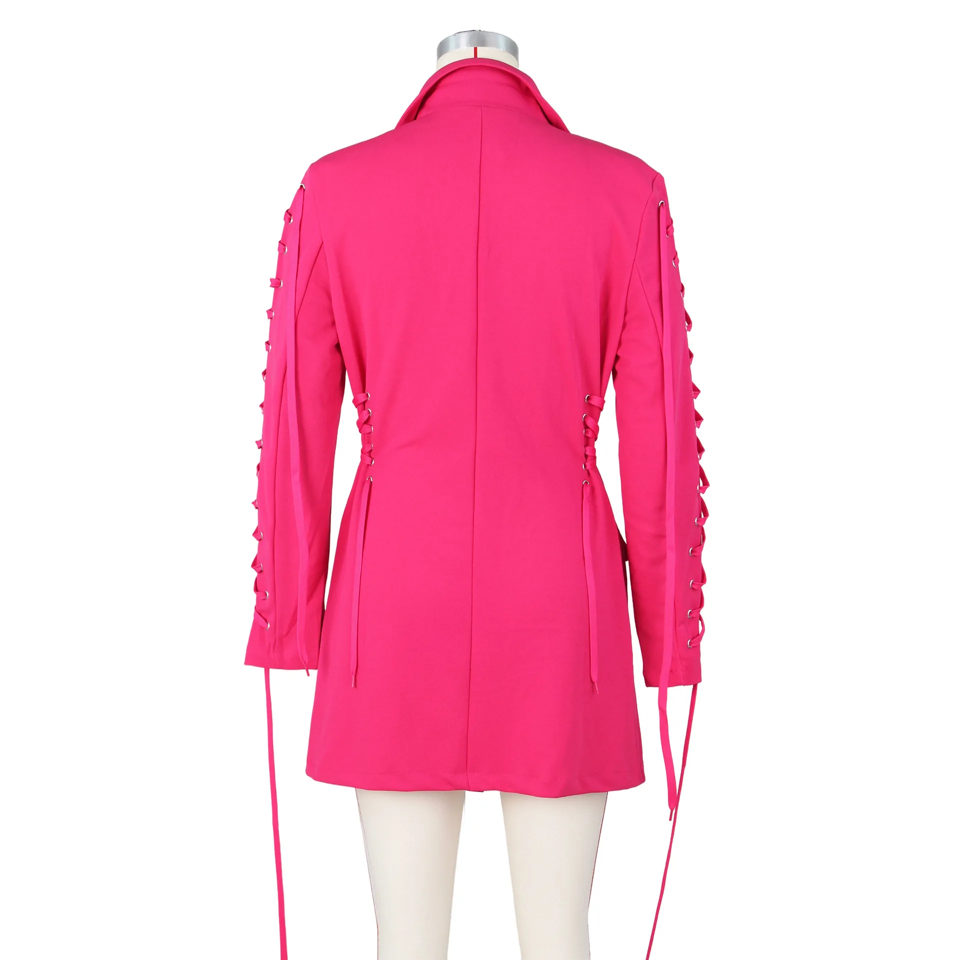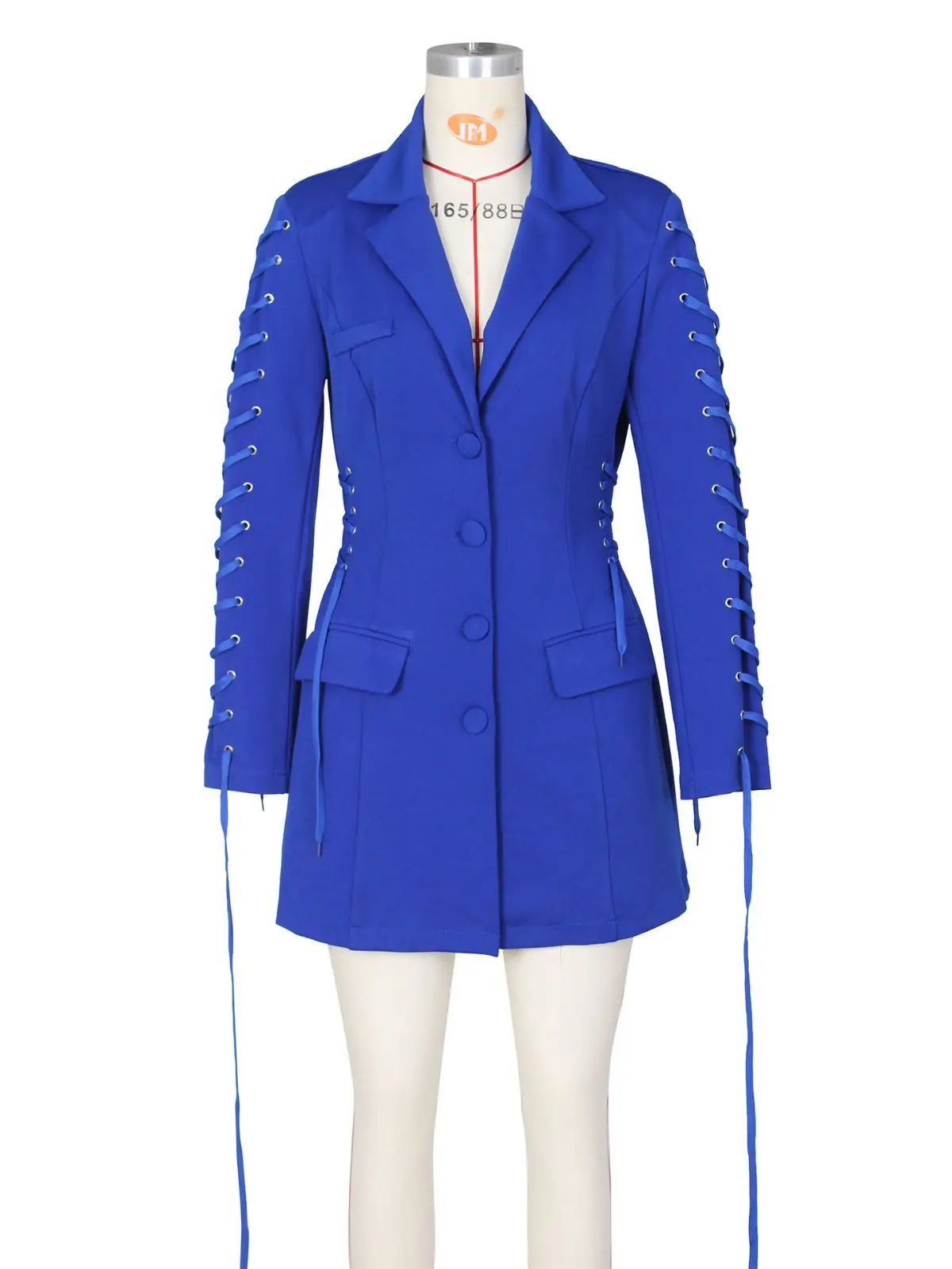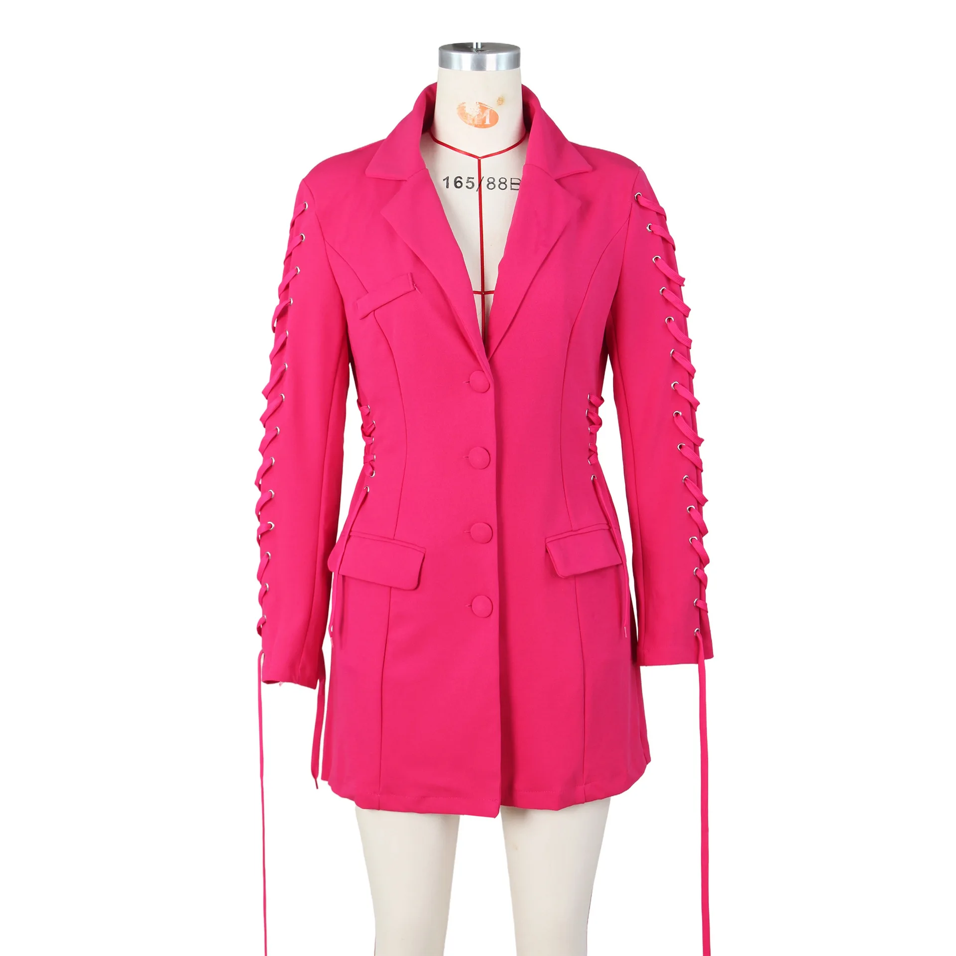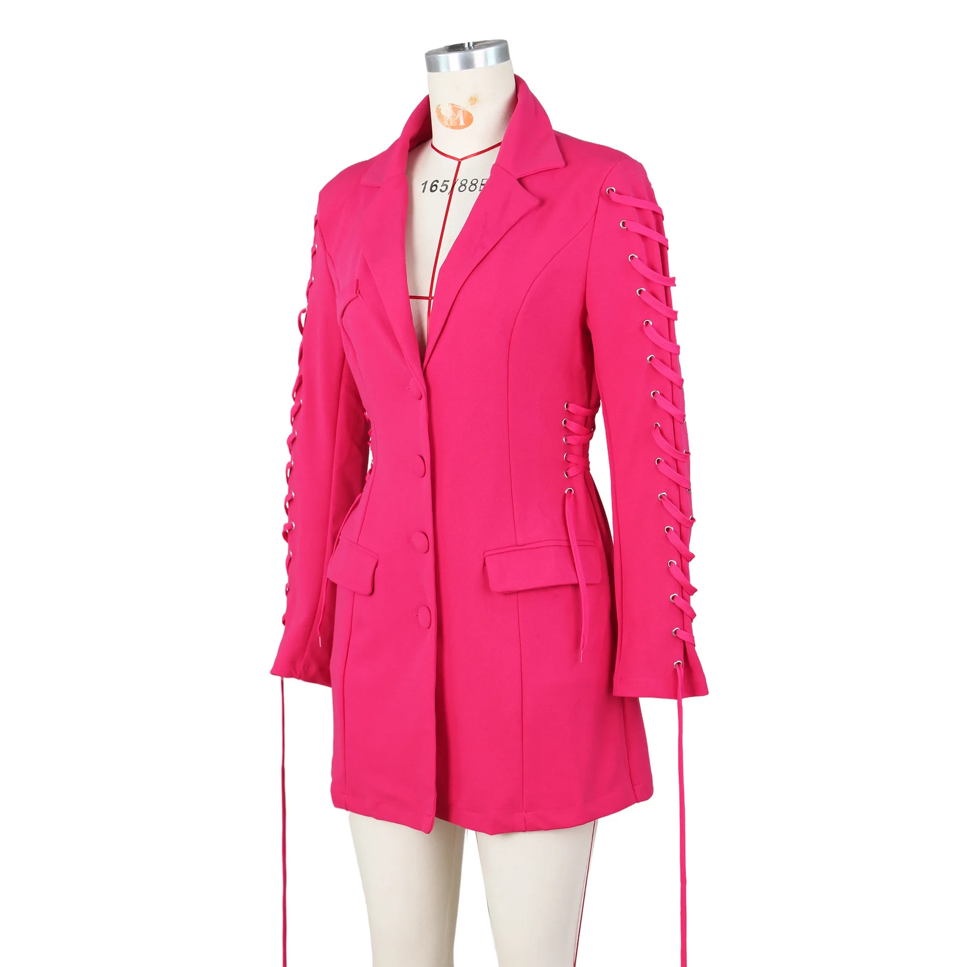 2023 Early Autumn New Arrival Solid Long Blazers Ladies Cinched Waist Lace Up Women Jacket For Office Work Blazer Dress